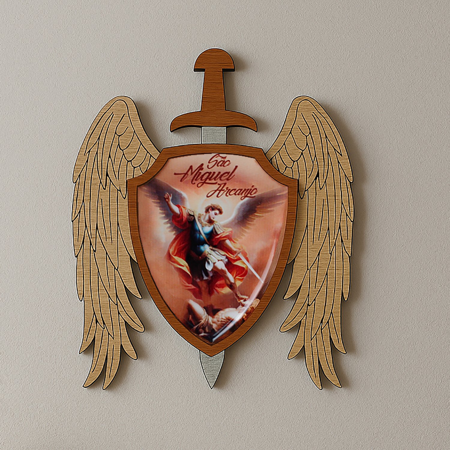 Escudo Alado com Espada São Miguel Arcanjo - 17 cm X 15 cm