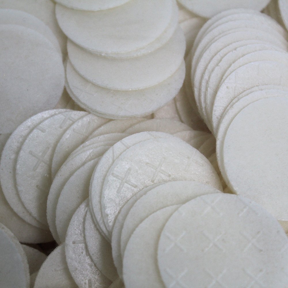 Hóstia com 3.6 cm de diâmetro. Embalagem com 120 g, contém aproximadamente 500 partículas.