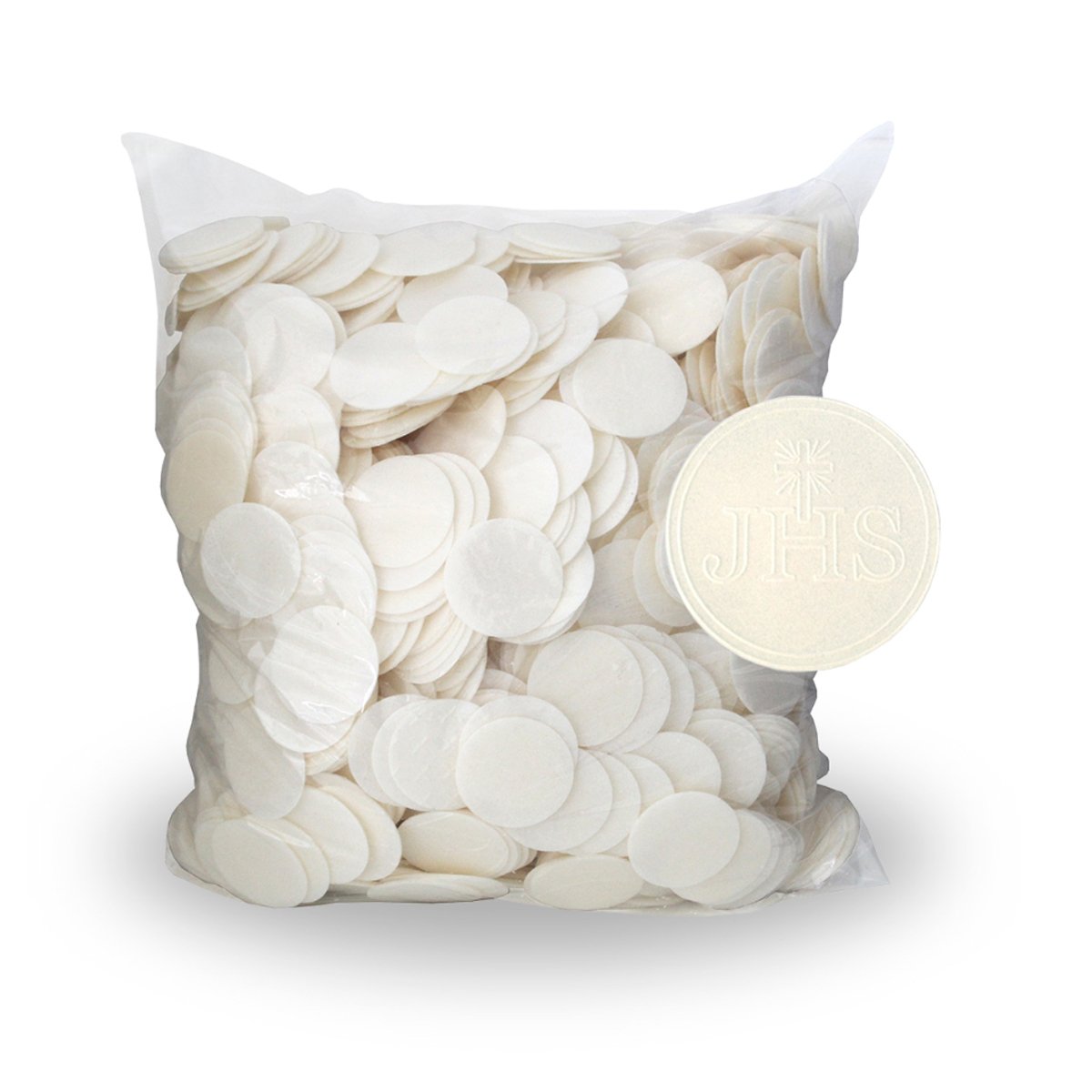 Hóstia com 4cm de diâmetro. 250g, contém aproximadamente 790 partículas.