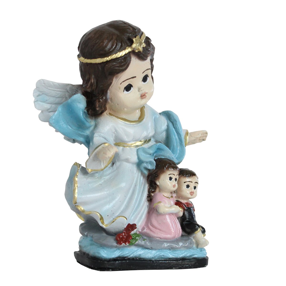 Imagem de Anjo da Guarda Azul Infantil, medindo aproximadamente 10 cm de altura e 5 cm de largura e 4 cm de comprimento.