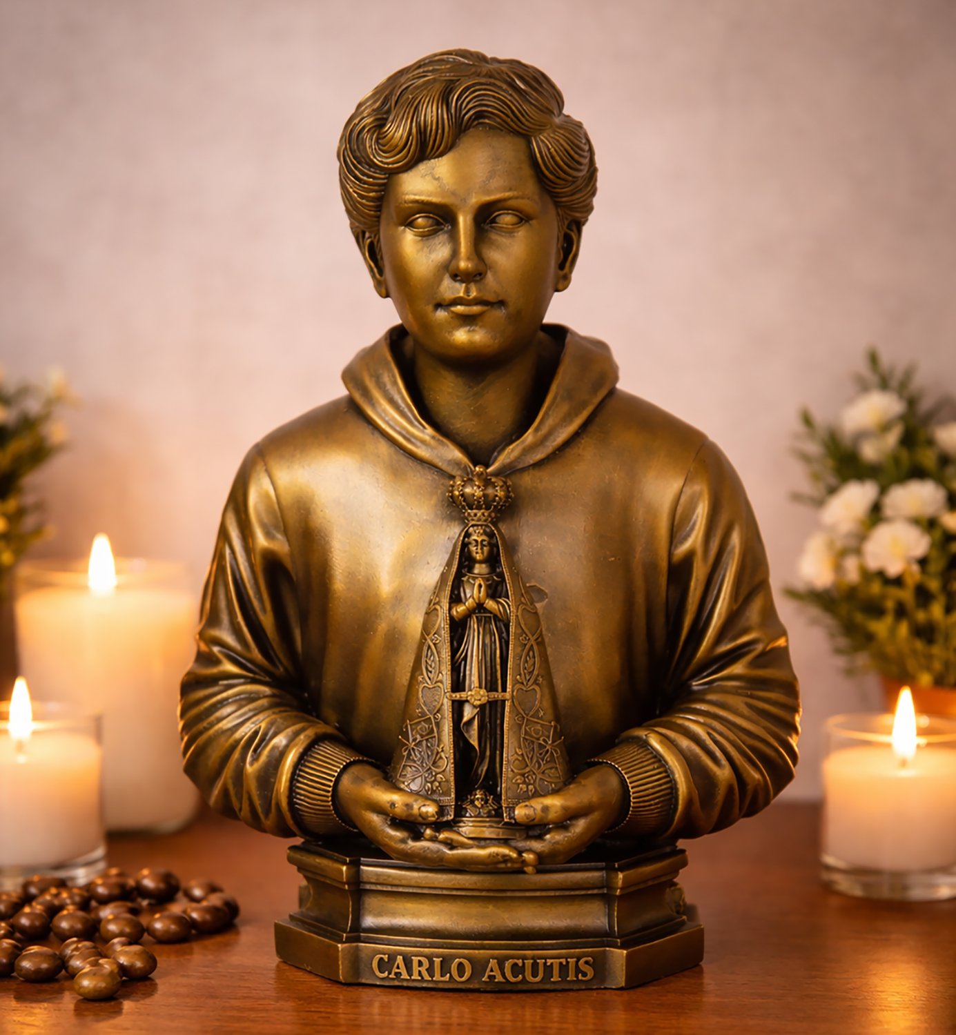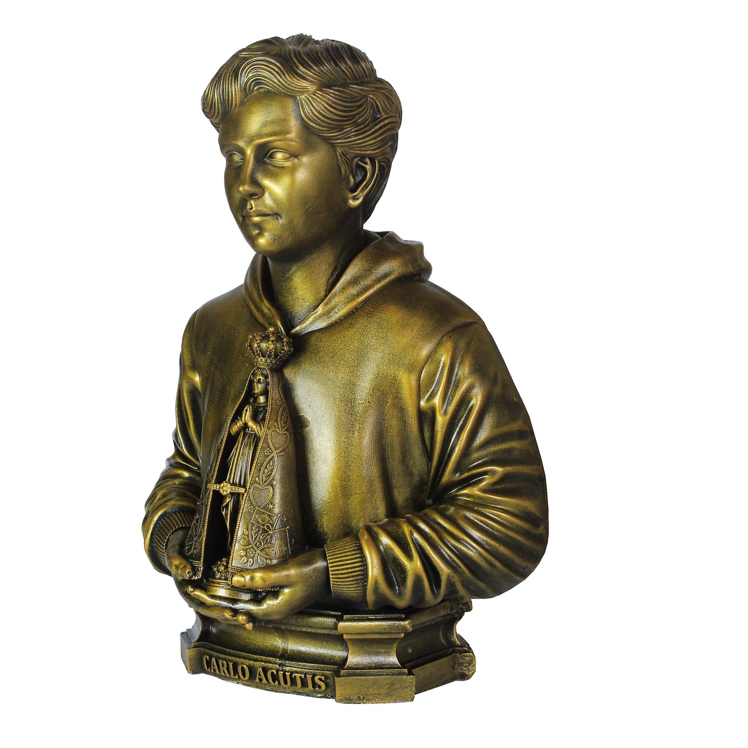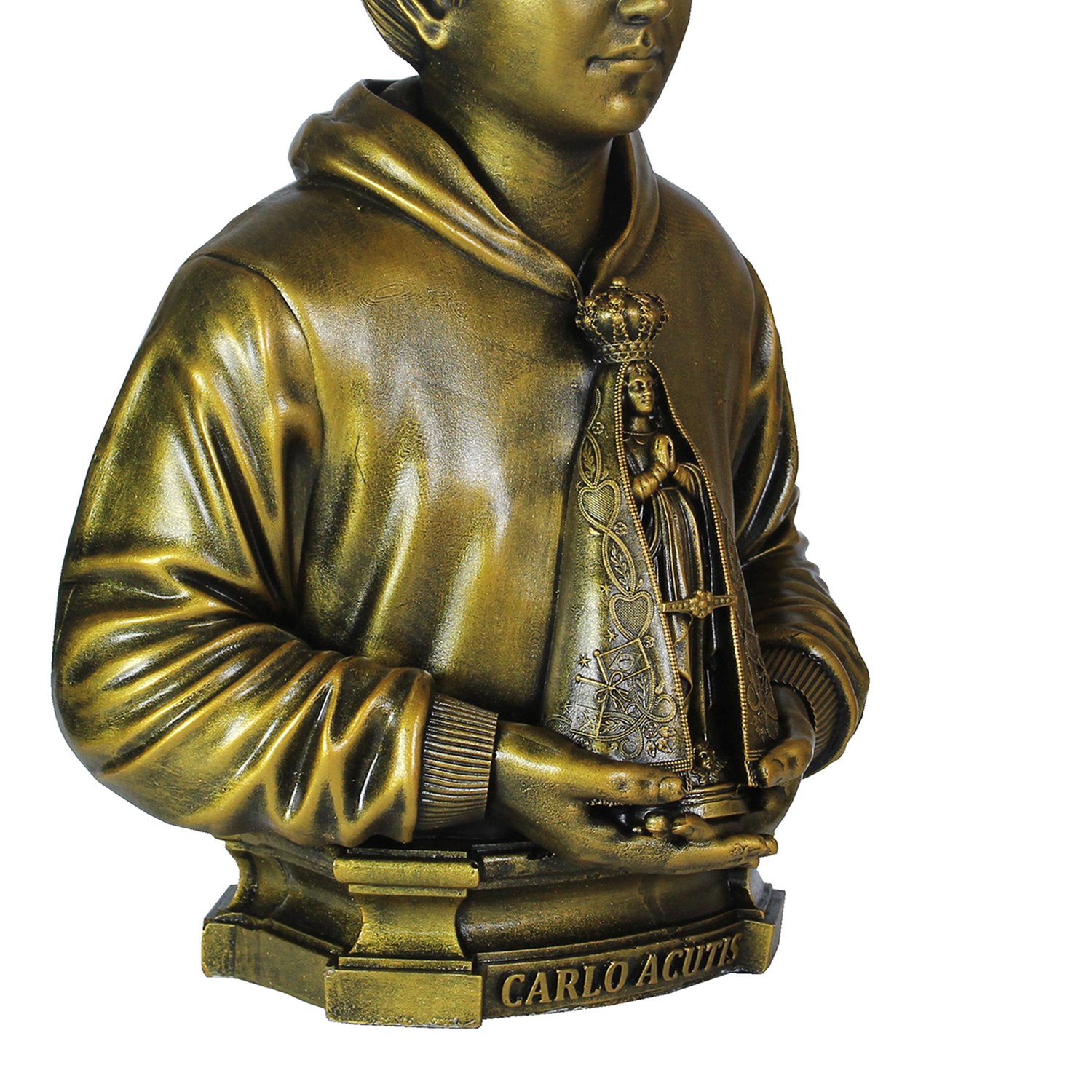 Imagem Busto de São Carlo Acutis de Mármore com Pintura Bronze