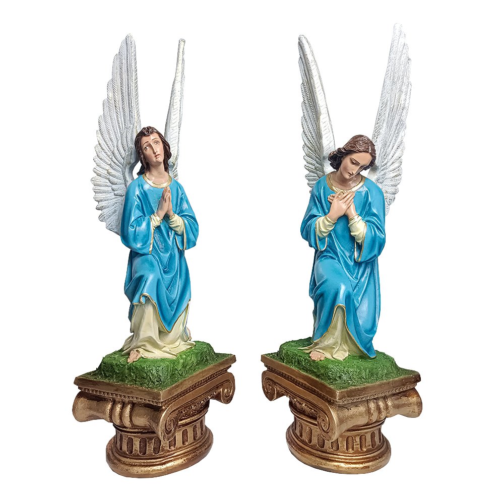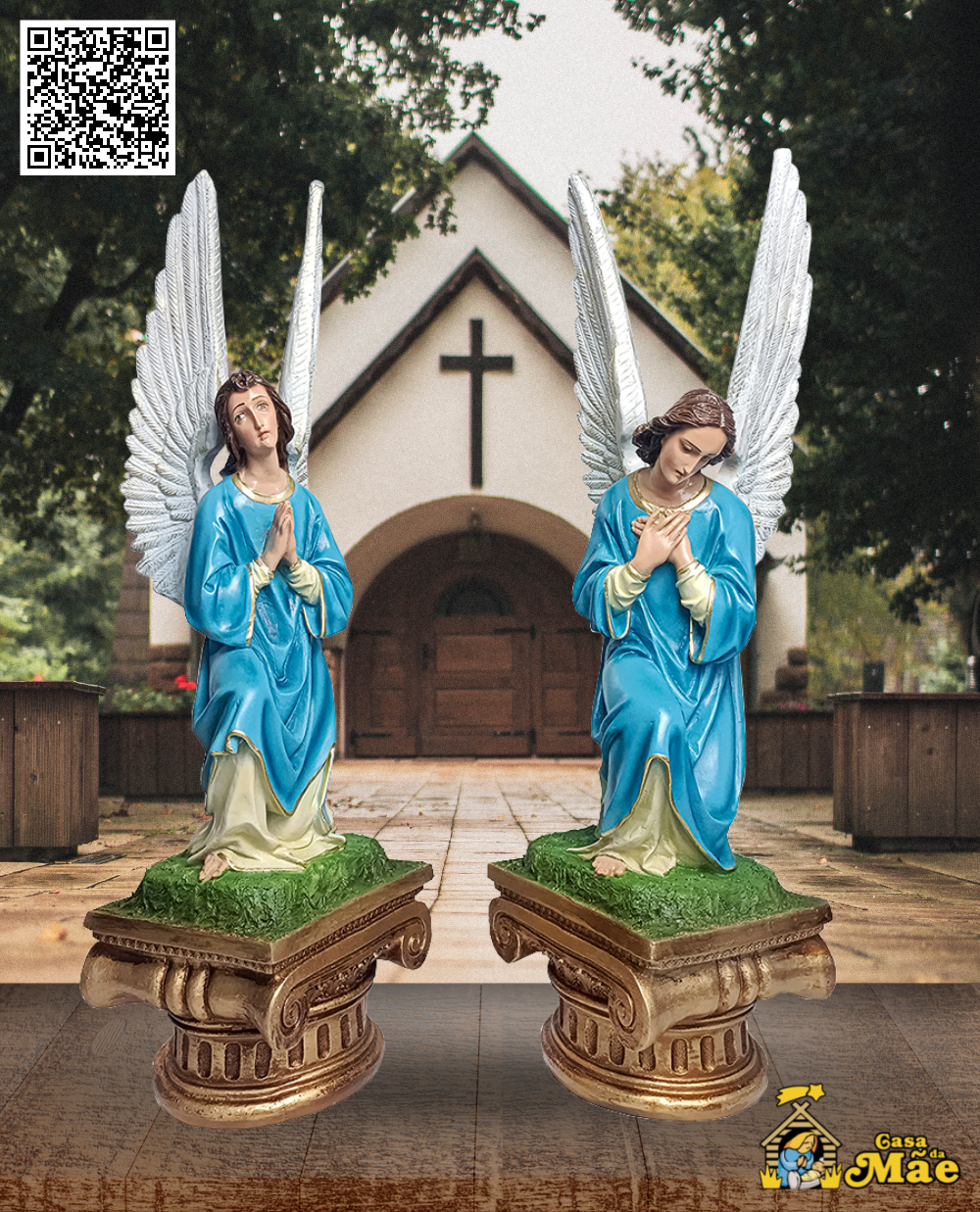 Imagem Conjunto de Anjos Adoradores Azul de Resina Nacional