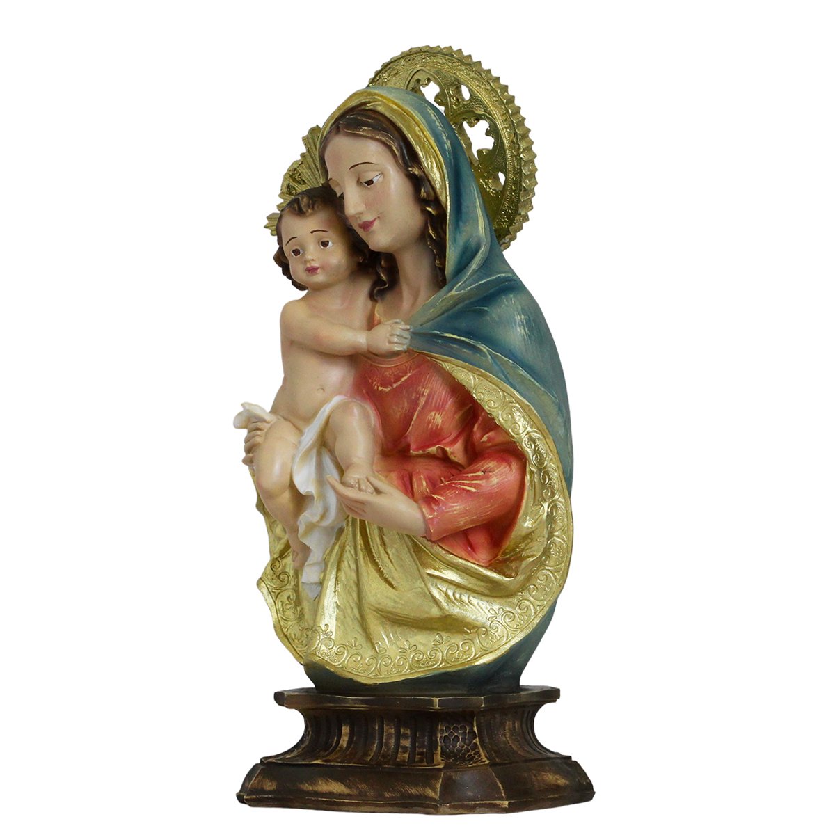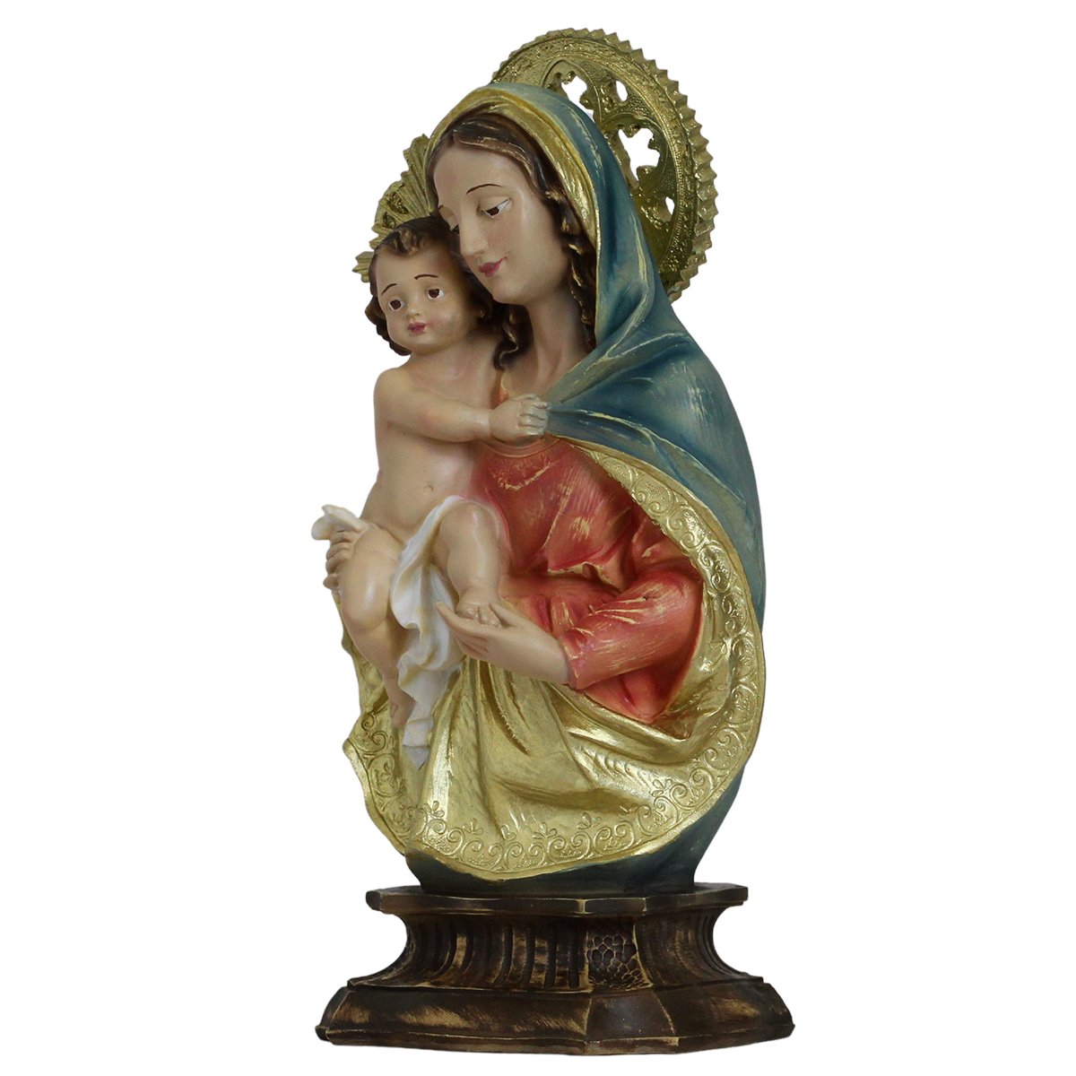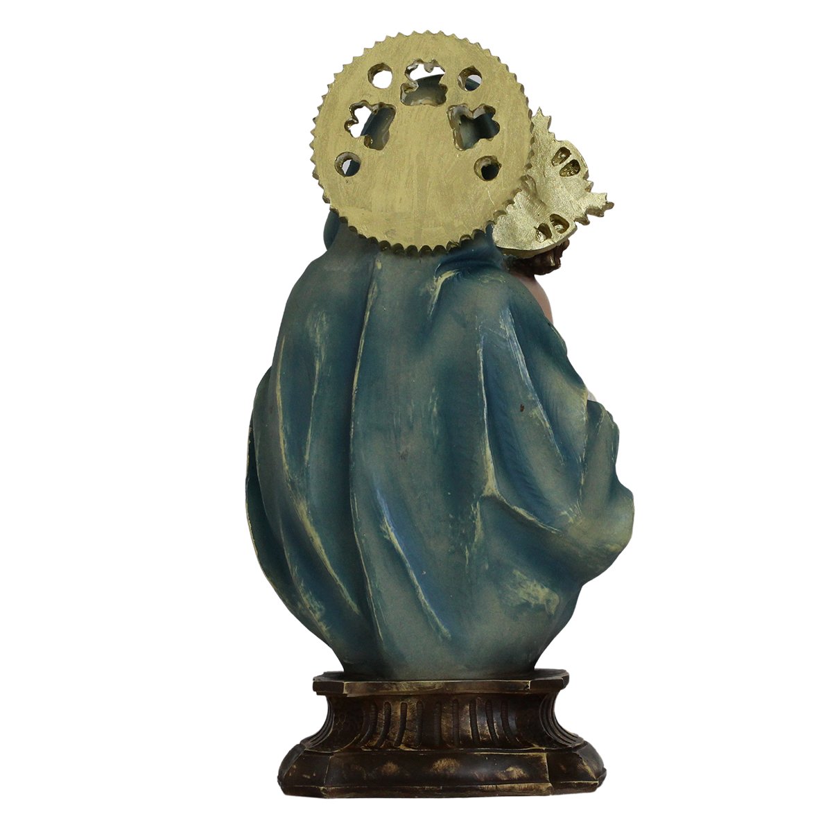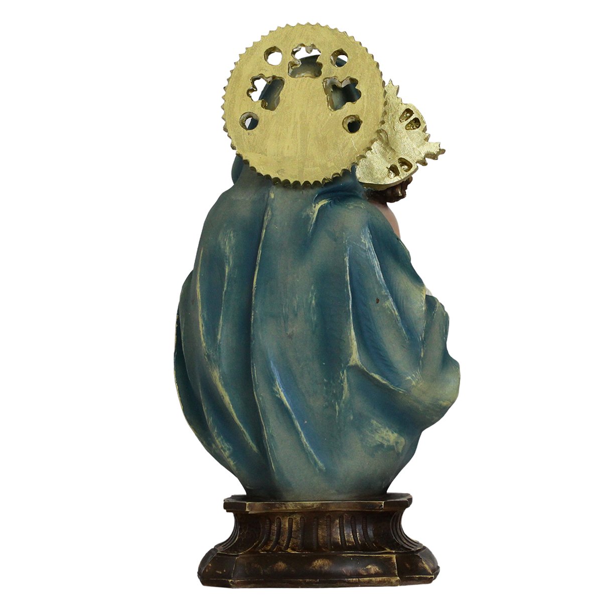 Imagem de Nossa Senhora da Divina Procidência de Resina linha premium, medindo aproximadamente 34 cm de altura e 17 cm de largura e 11 cm de profundidade.