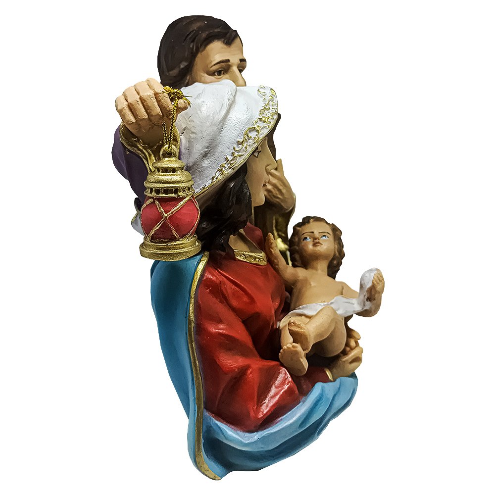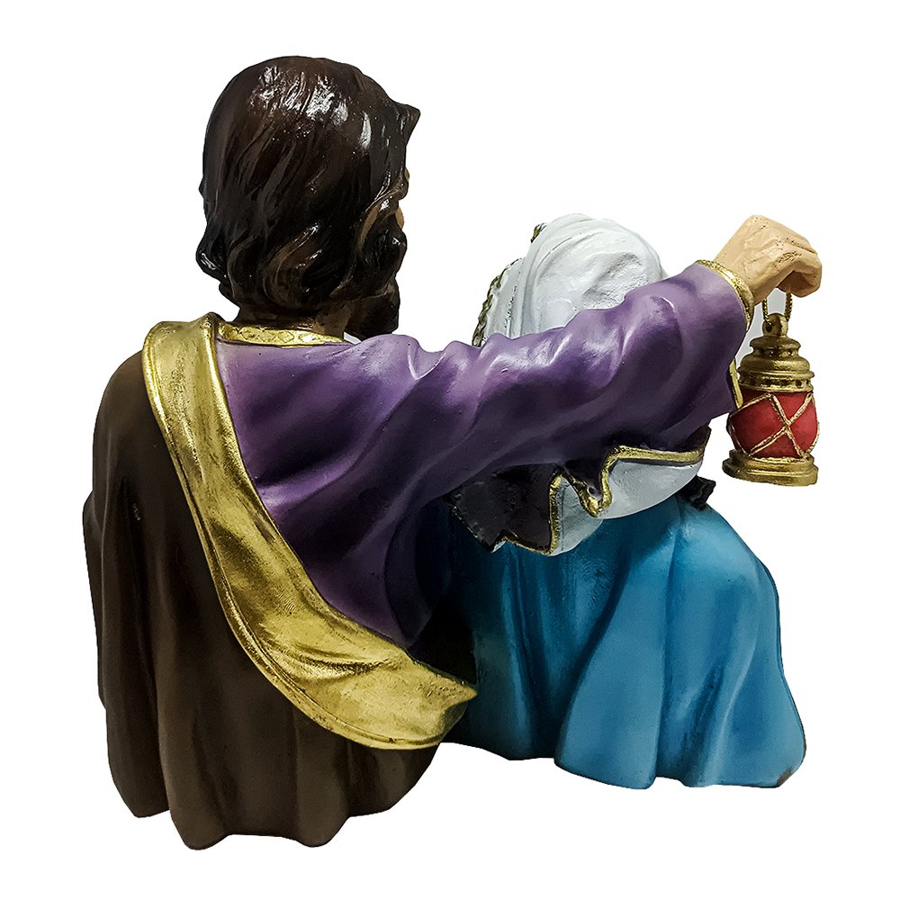 Imagem da Sagrada Família Busto com Lampião de Resina Nacional - 23 cm