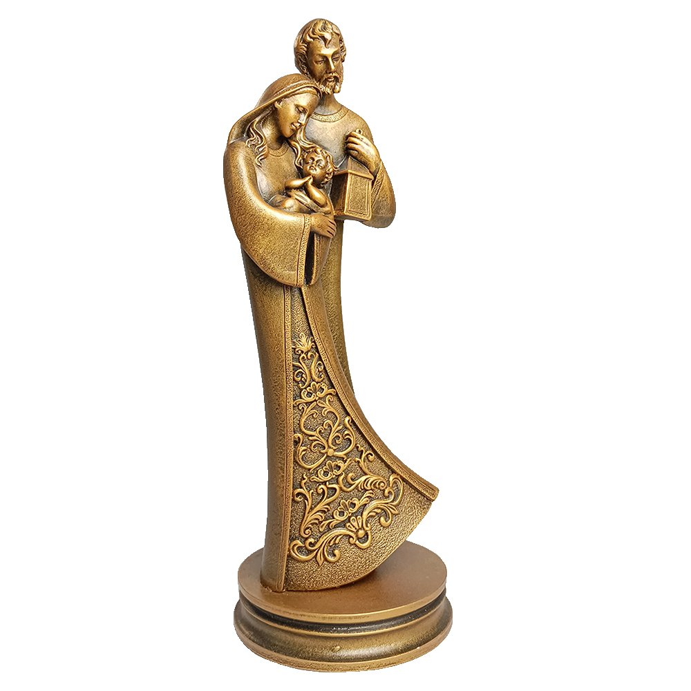 Imagem da Sagrada Família produzida em Mármore com Pintura em Bronze, material sinônimo de elegância e requinte, o mármore é uma boa opção para quem deseja decorar de forma única e cheia de estilo. Linda peça decorativa. Produção própria.