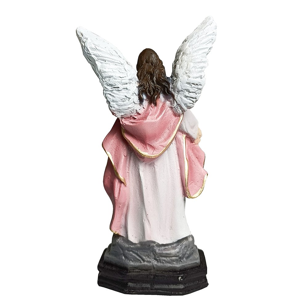 Imagem de Anjo da Guarda Rosa produzida em resina, a peça possui traços delicados, riqueza de detalhes e excelente acabamento.