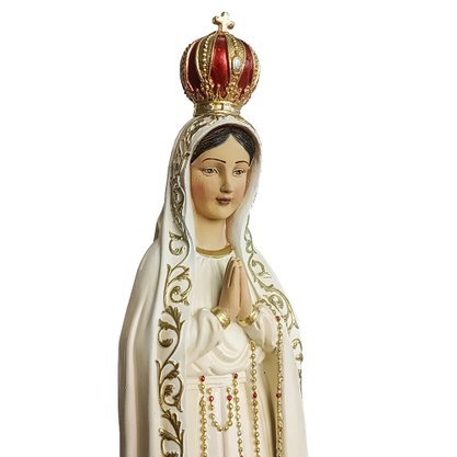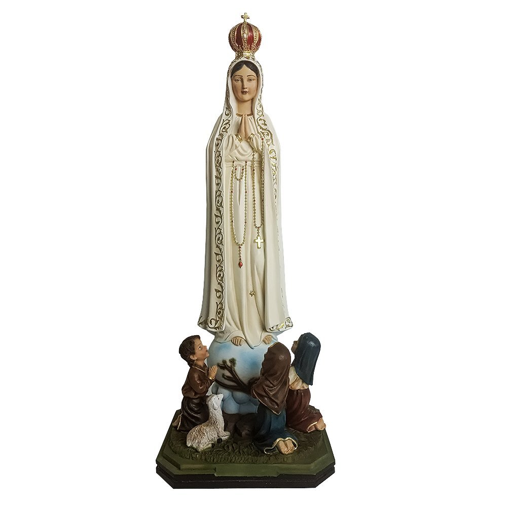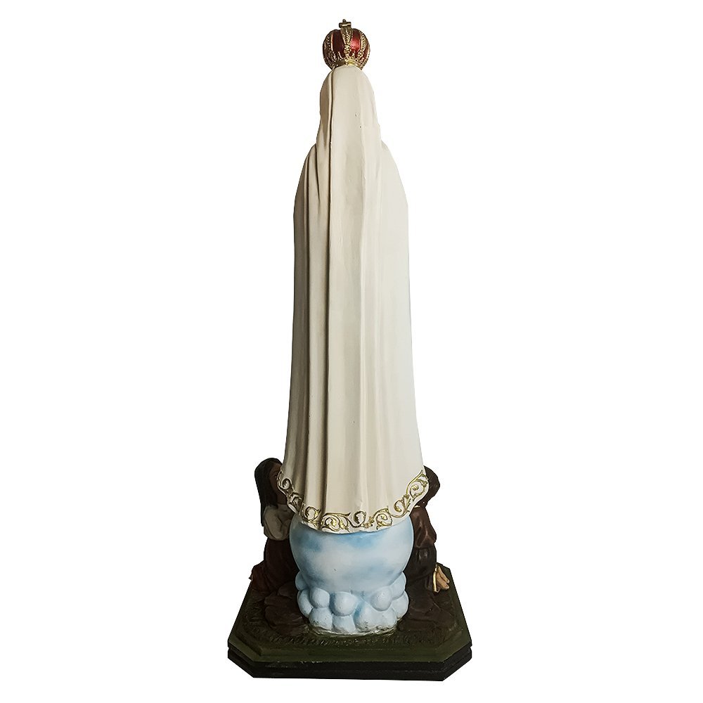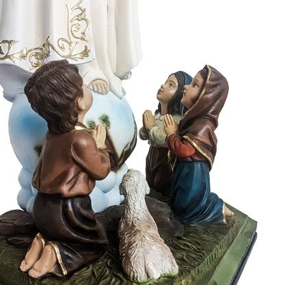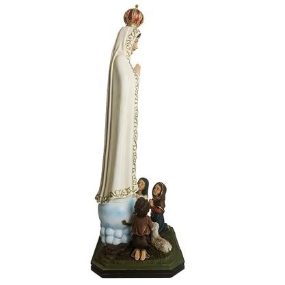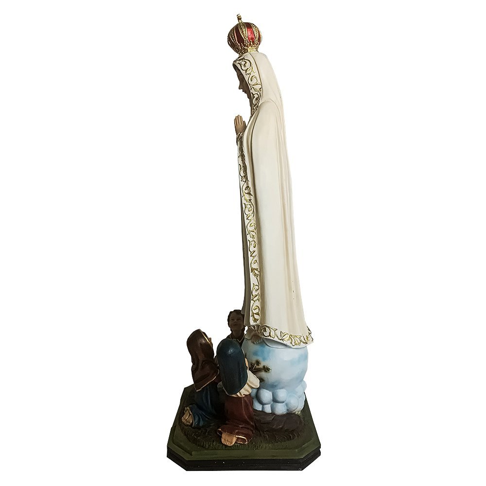 Imagem de Fátima produzida em resina, a peça possui traços delicados, riqueza de detalhes e excelente acabamento.