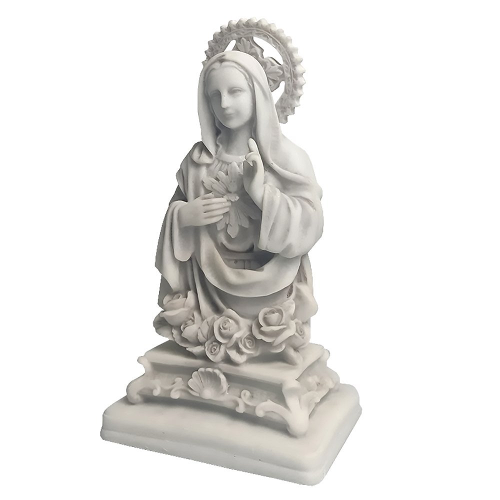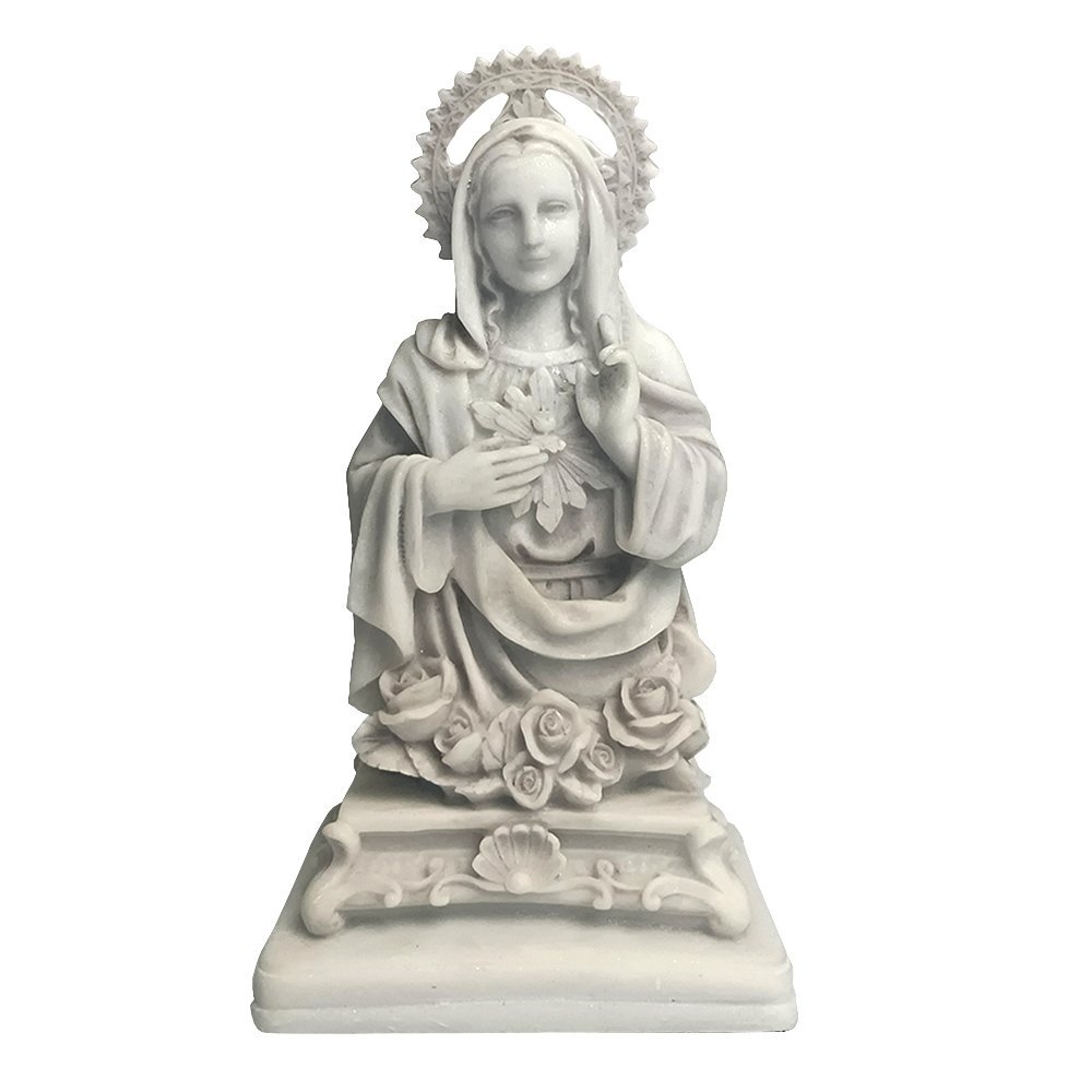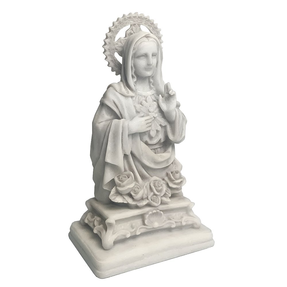 Imagem Imaculado Coração de Maria produzida em Mármore, uma peça que transmite requinte e sofisticação, rica em detalhes, material sinônimo de elegância, o mármore é uma boa opção para quem deseja decorar de forma única. Fabricação própria, por isso garantimos o melhor preço.