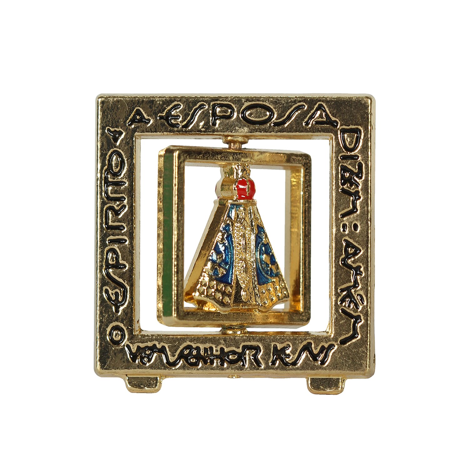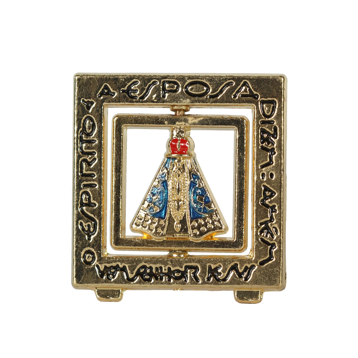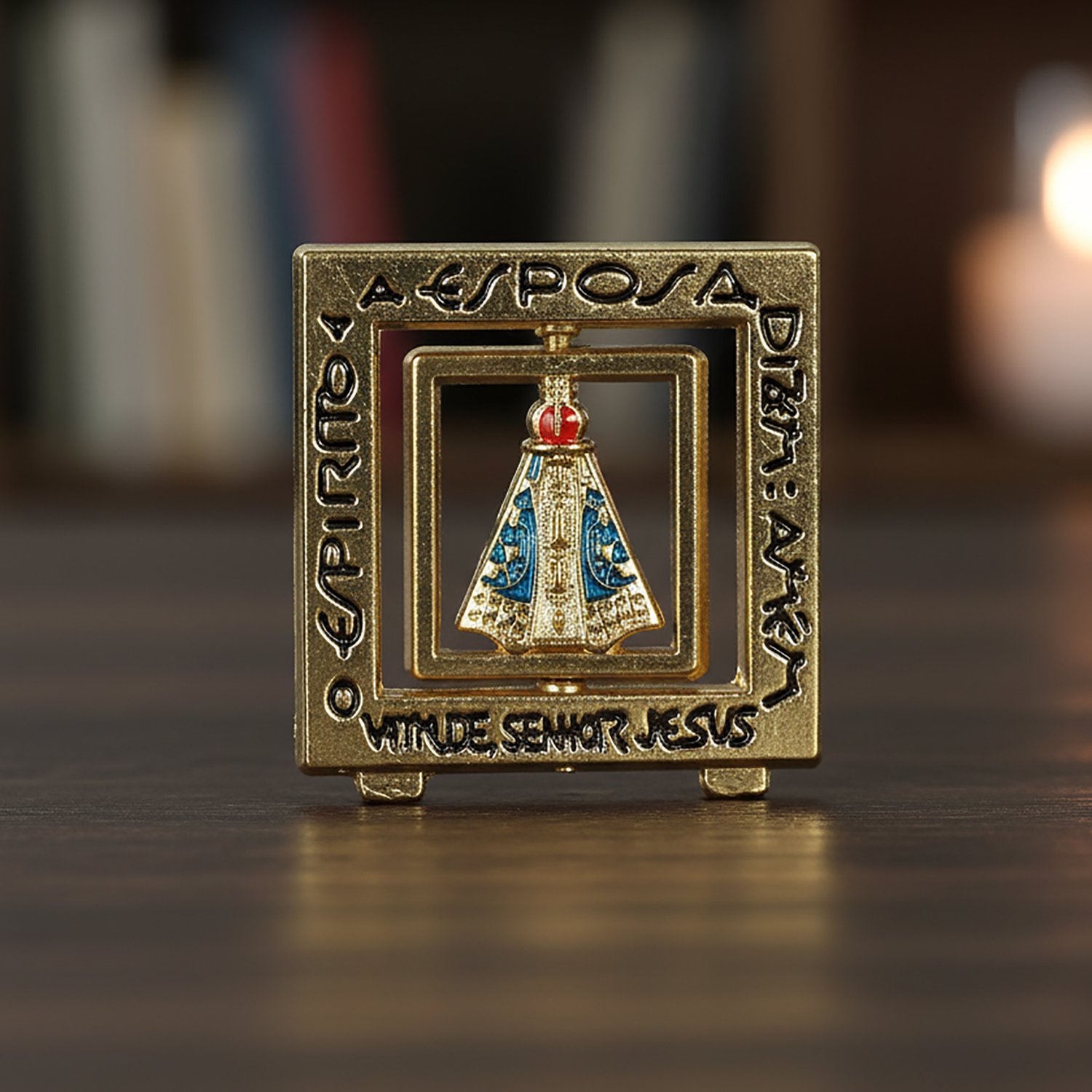 Imagem de Metal de Nossa Senhora Aparecida Giratório Dourado Mesa