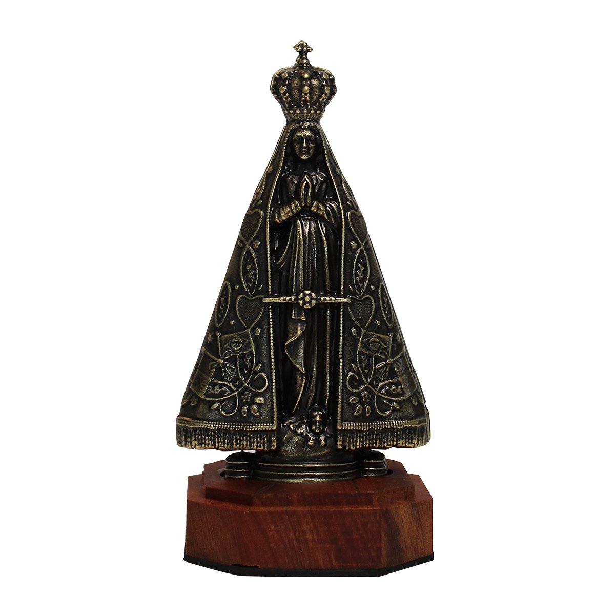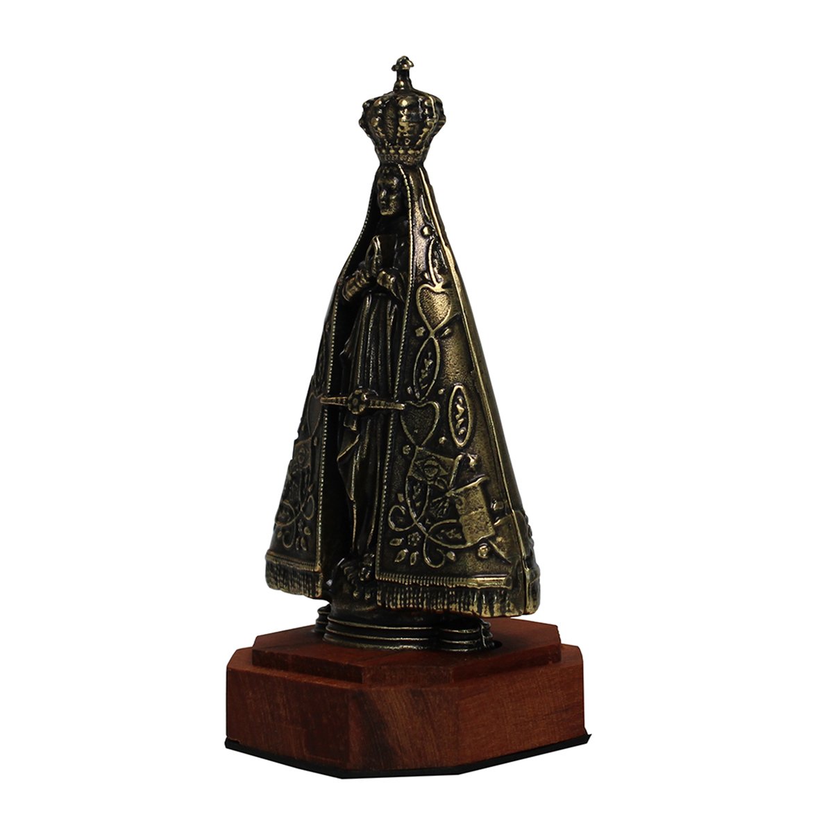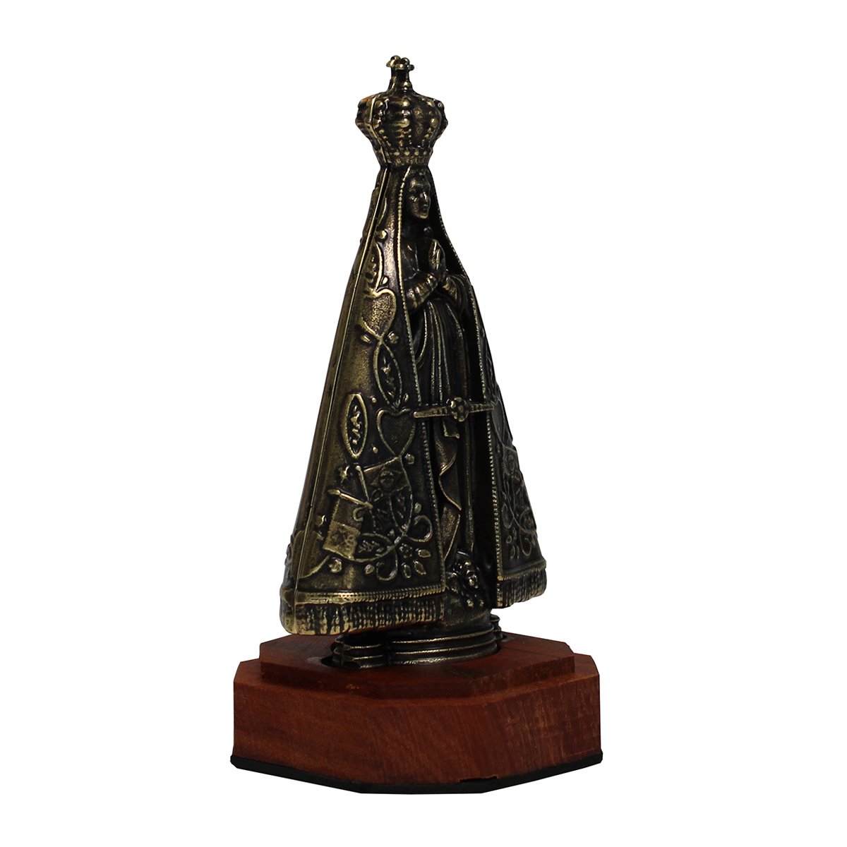 Imagem de Nossa Senhora Aparecida Metal Ouro Velho Base Madeira