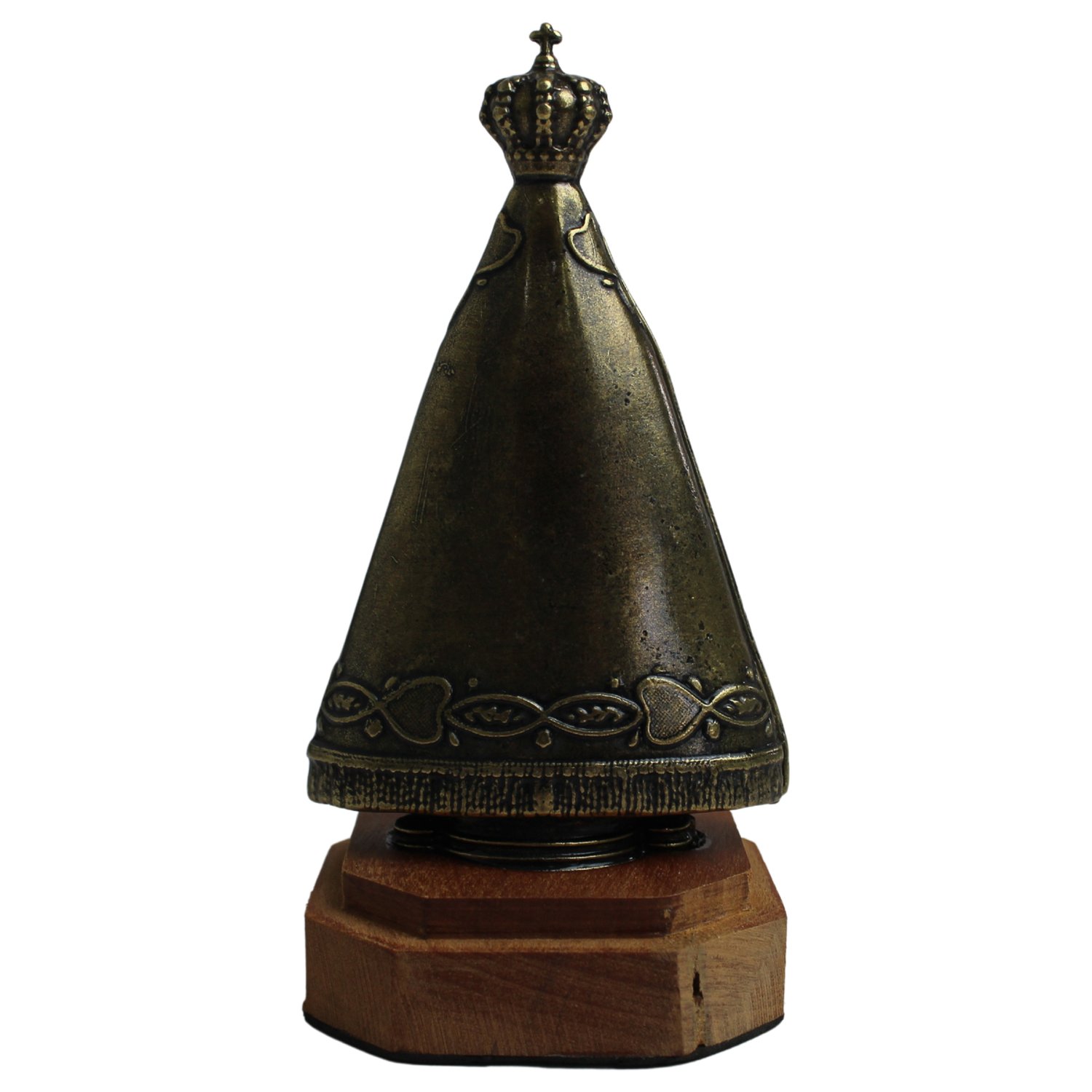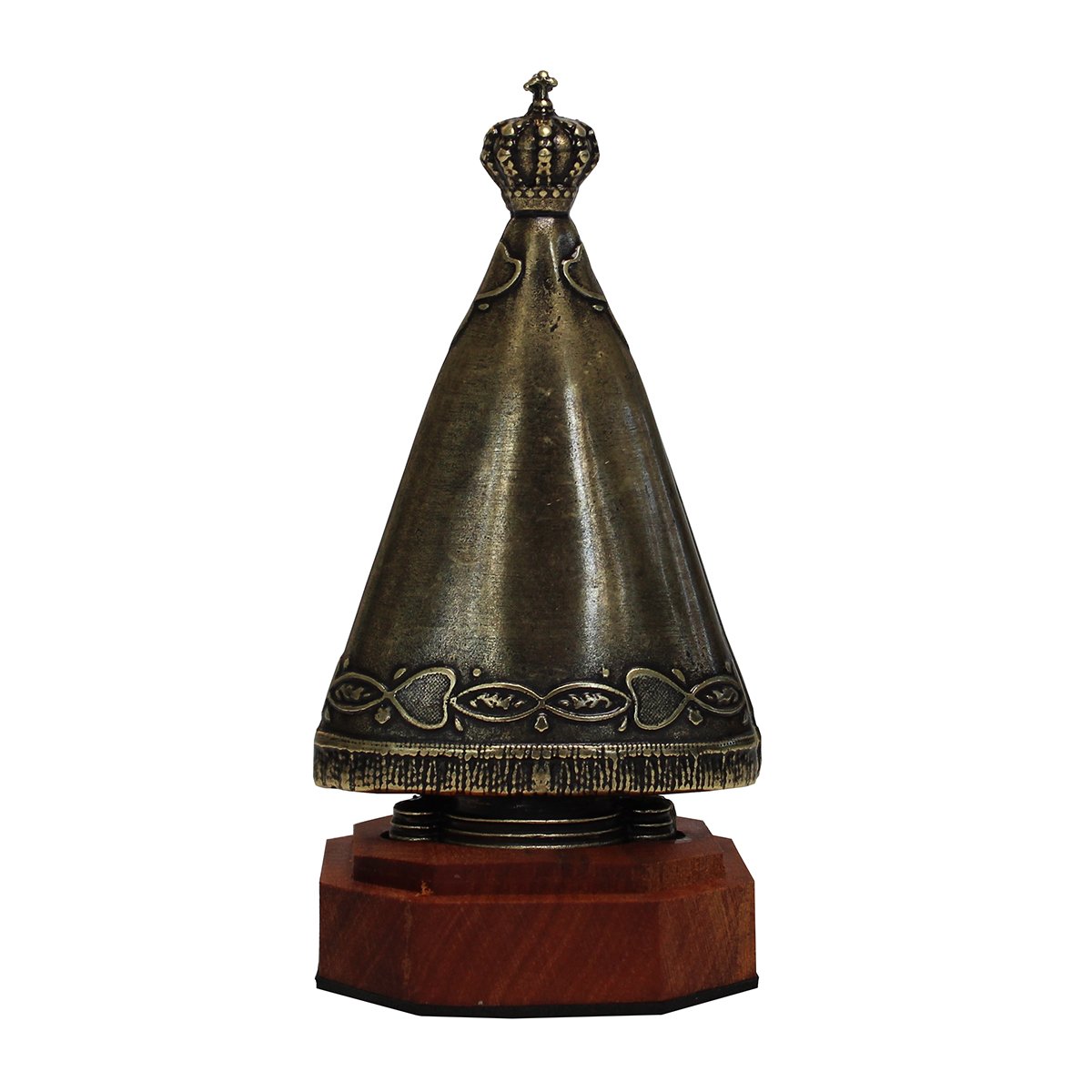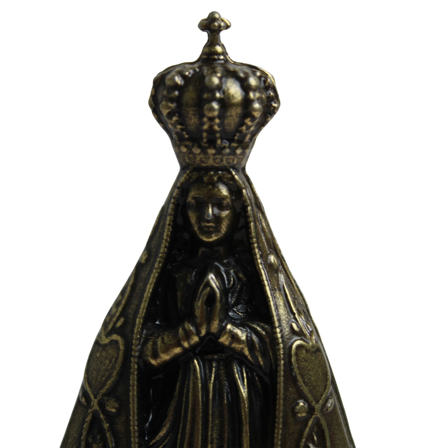 Imagem de Nossa Senhora Aparecida Metal Ouro Velho Base Madeira