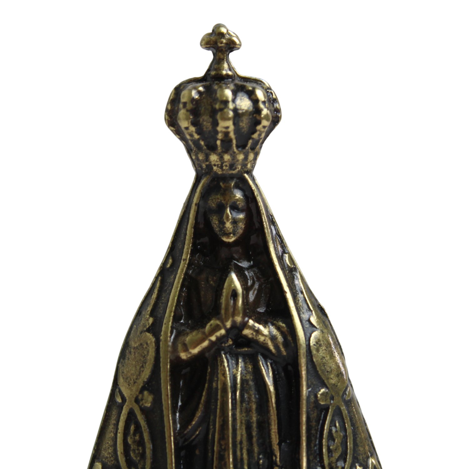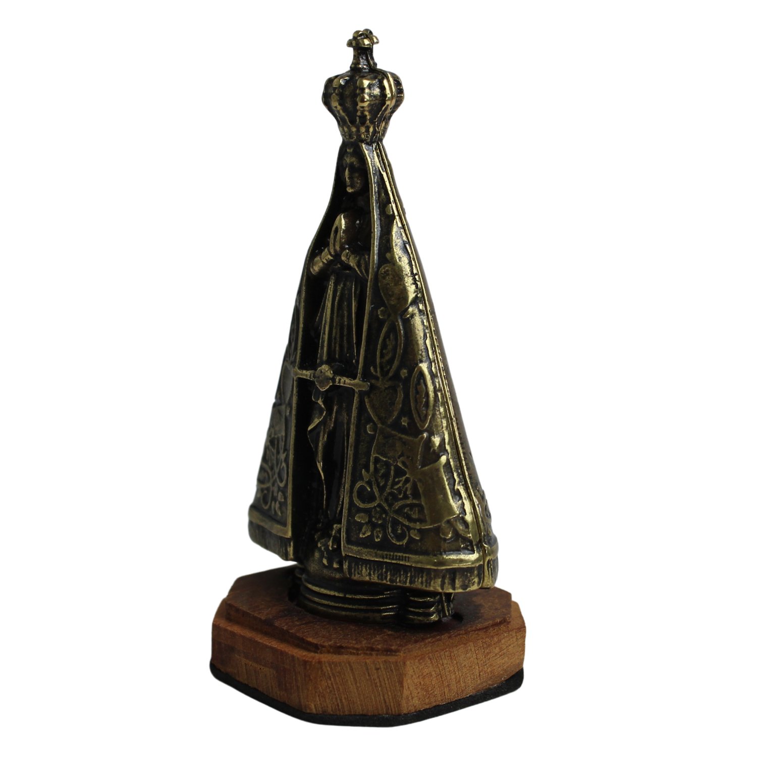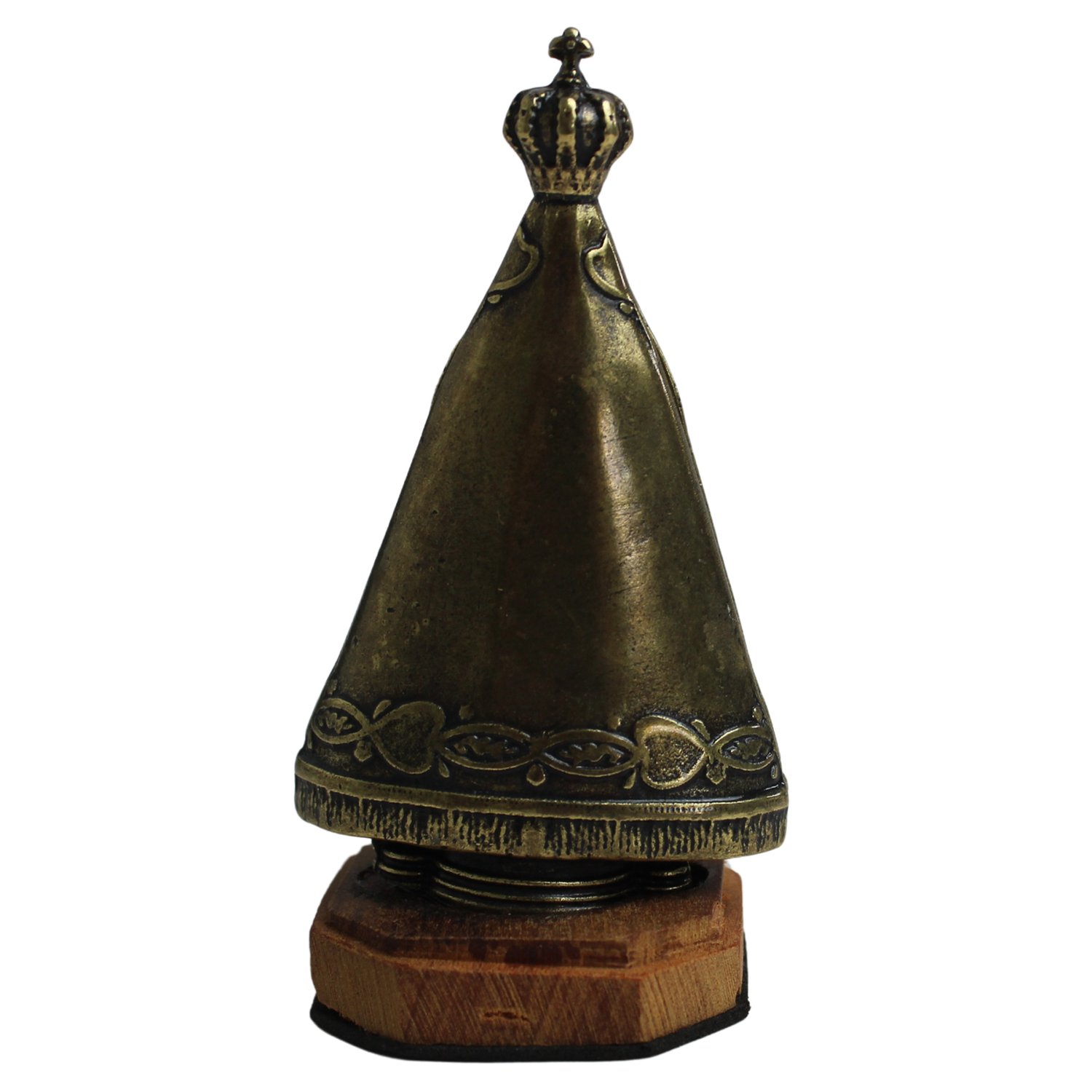 Imagem de Nossa Senhora Aparecida Metal Ouro Velho Base Madeira