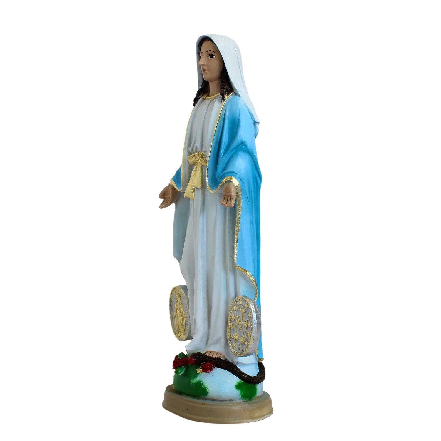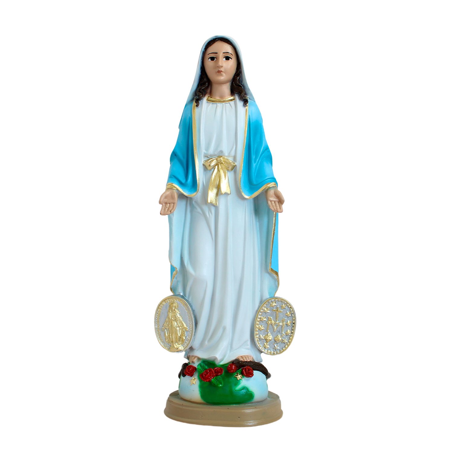 Nossa Senhora deu a Catarina Labouré uma visão reveladora. Vejamos o relato da própria Catarina que, depois, se tornou santa: ...uma Senhora de mediana estatura, de rosto muito belo e formoso... Estava de pé, com um vestido de seda, cor de branco-aurora. Cobria-lhe a cabeça um véu azul, que descia até os pés... As mãos estenderam-se para a terra, enchendo-se de anéis cobertos de pedras preciosas. A Santíssima Virgem disse-me: Eis o símbolo das Graças que derramo sobre todas as pessoas que mais pedem ... Formou-se então, em volta de Nossa Senhora, um quadro oval, em que se liam, em letras de ouro, estas palavras: Ó Maria concebida sem pecado, rogai por nós, que recorremos a Vós. Depois disso o quadro que eu via virou-se, e eu vi no seu reverso: a letra M, tendo uma cruz na parte de cima, com um traço na base. Por baixo: os Sagrados Corações de Jesus e de Maria. O de Jesus, cercado por uma coroa de espinhos e a arder em chamas, e o de Maria também em chamas e atravessado por uma espada, cercado de doze estrelas. Ao mesmo tempo, ouvi distintamente a voz da Senhora, a dizer-me: Manda, manda cunhar uma medalha por este modelo. As pessoas que a trouxeram, com devoção, hão de receber muitas graças.