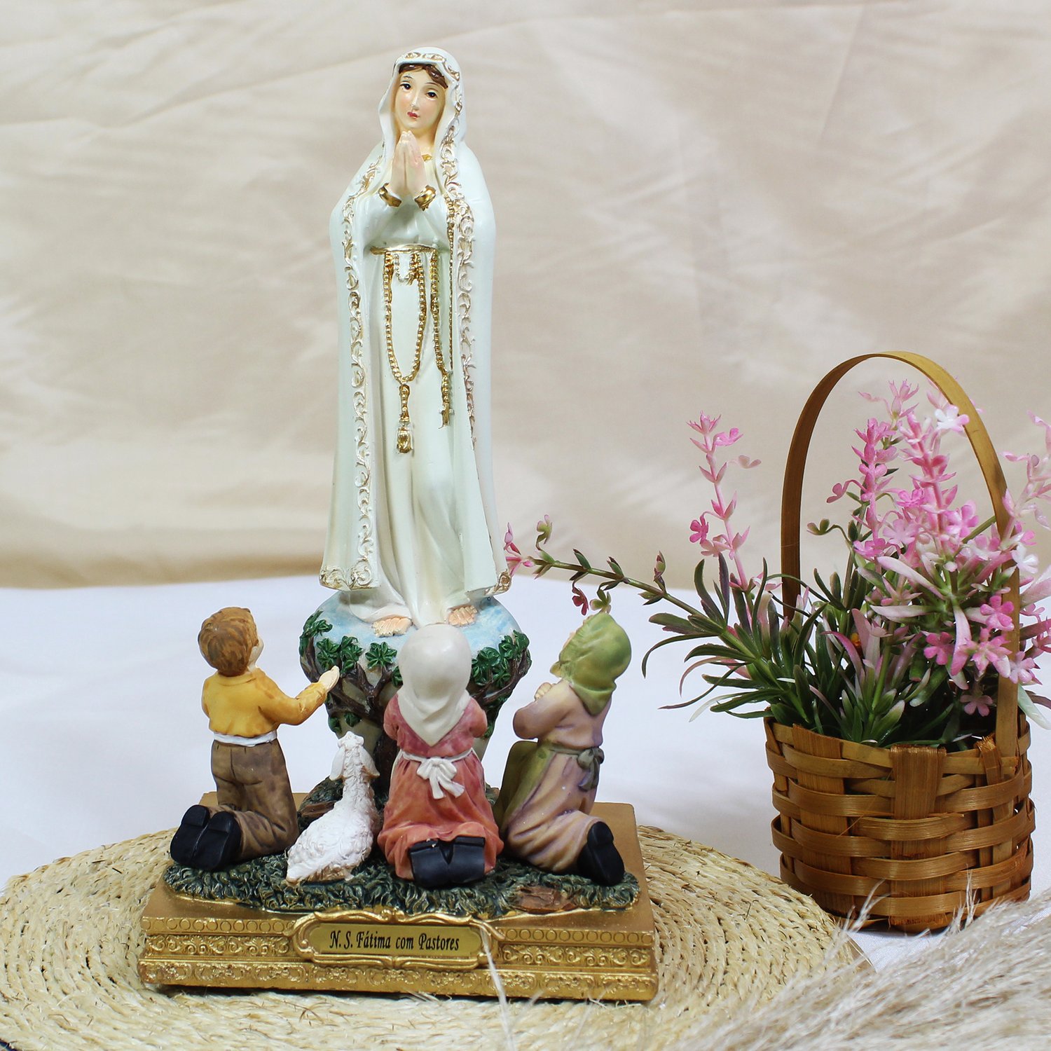 Imagem de Nossa Senhora de Fátima com Pastores de Resina Importada