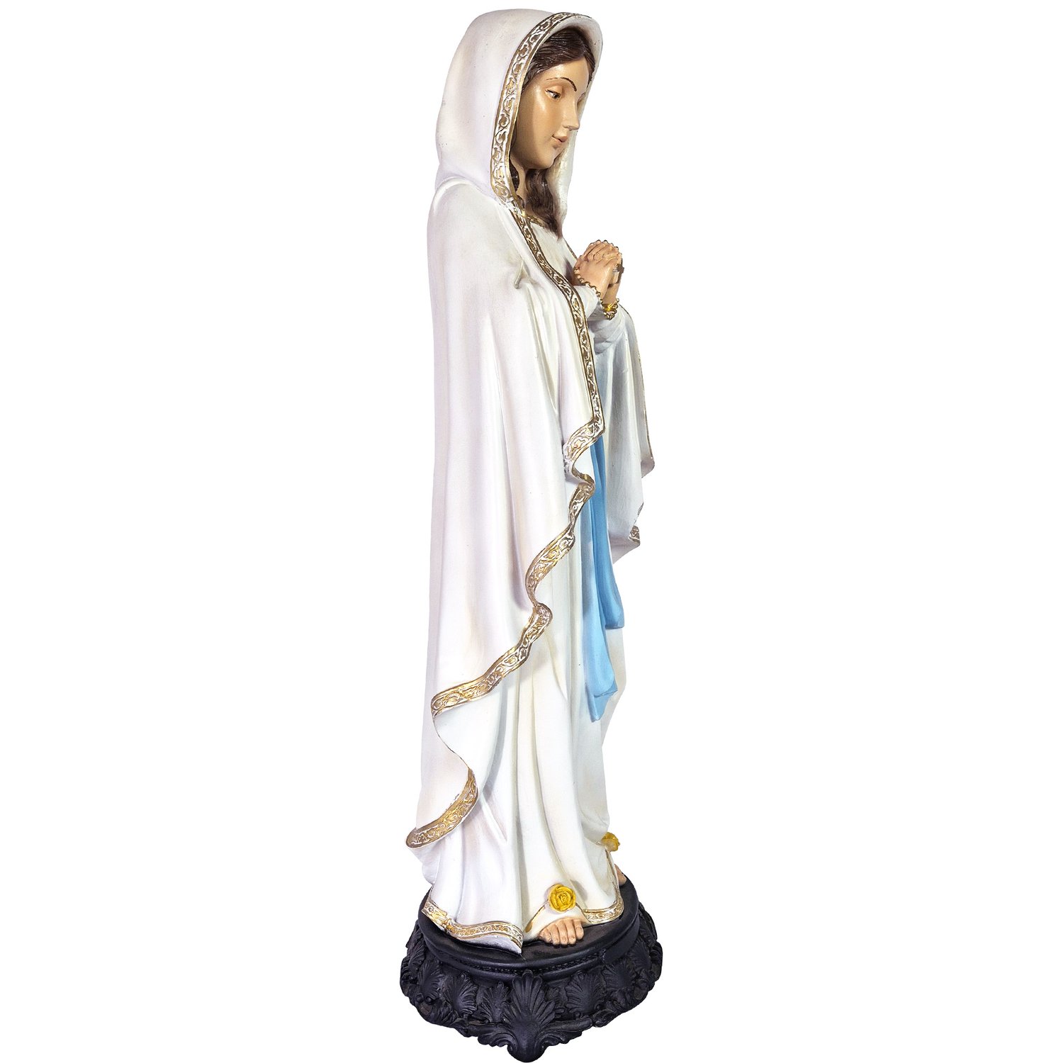 Imagem de Nossa Senhora de Lourdes produzida em resina, a peça possui traços delicados, riqueza de detalhes e excelente acabamento.