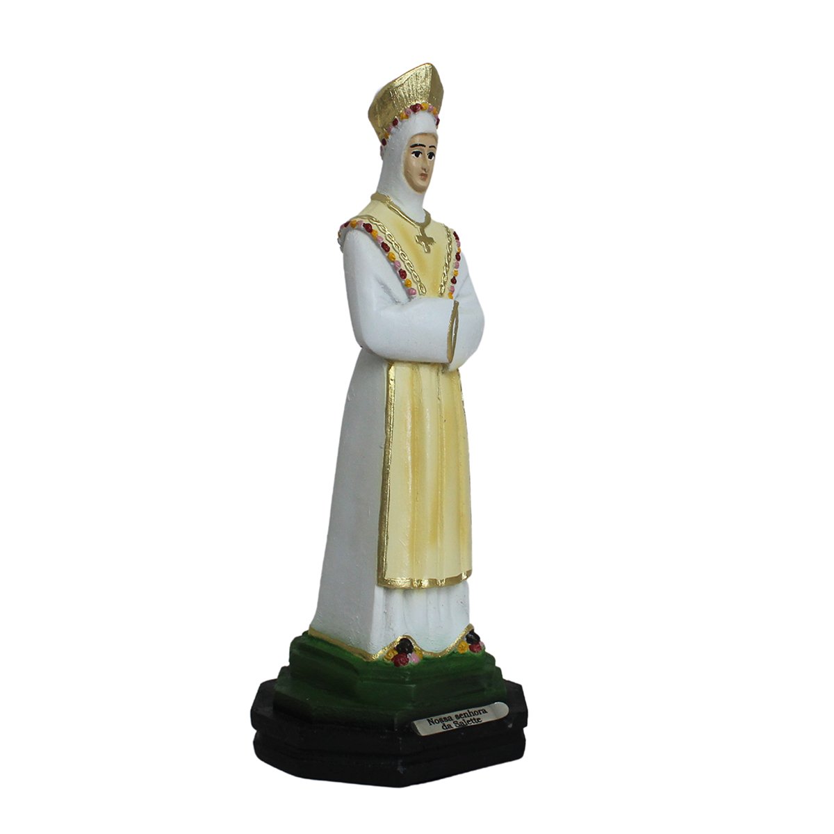 Imagem de Nossa Senhora Salette produzida em resina, a peça possui traços delicados, riqueza de detalhes e excelente acabamento.