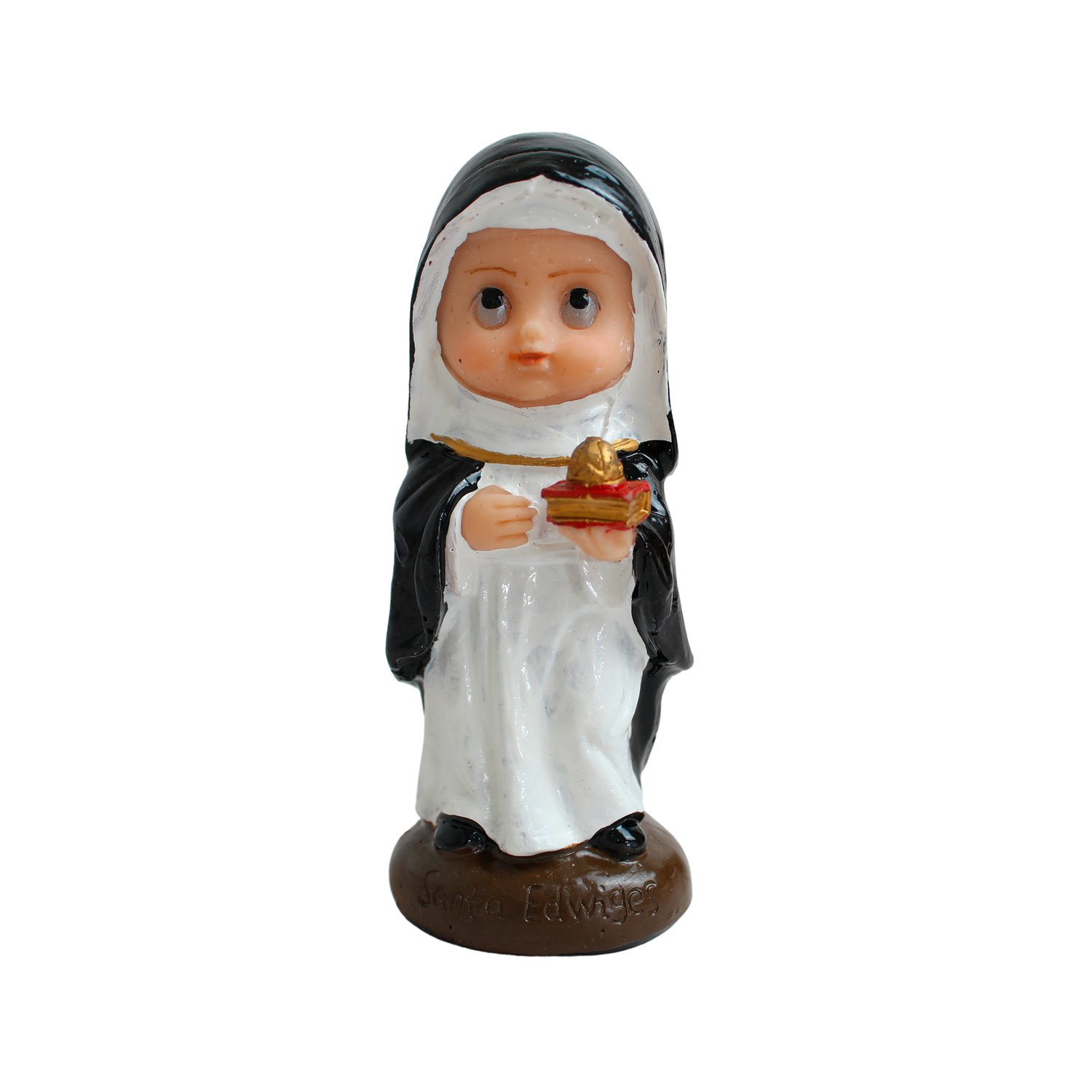 Santa Edwiges é representada vestindo um hábito religioso. Isso acontece porque quando ficou viúva e seus filhos criados, ela entrou para o Mosteiro de Trebnitz, na Polônia, e passou a viver a vida religiosa. Porém, mesmo estando no mosteiro, ela não deixou de ajudar os pobres e endividados, usando ainda o dinheiro de seu dote. A caridade foi a grande marca desta santa. Por causa de sua caridade, muitos foram libertados da prisão tendo suas dívidas pagas pela santa.