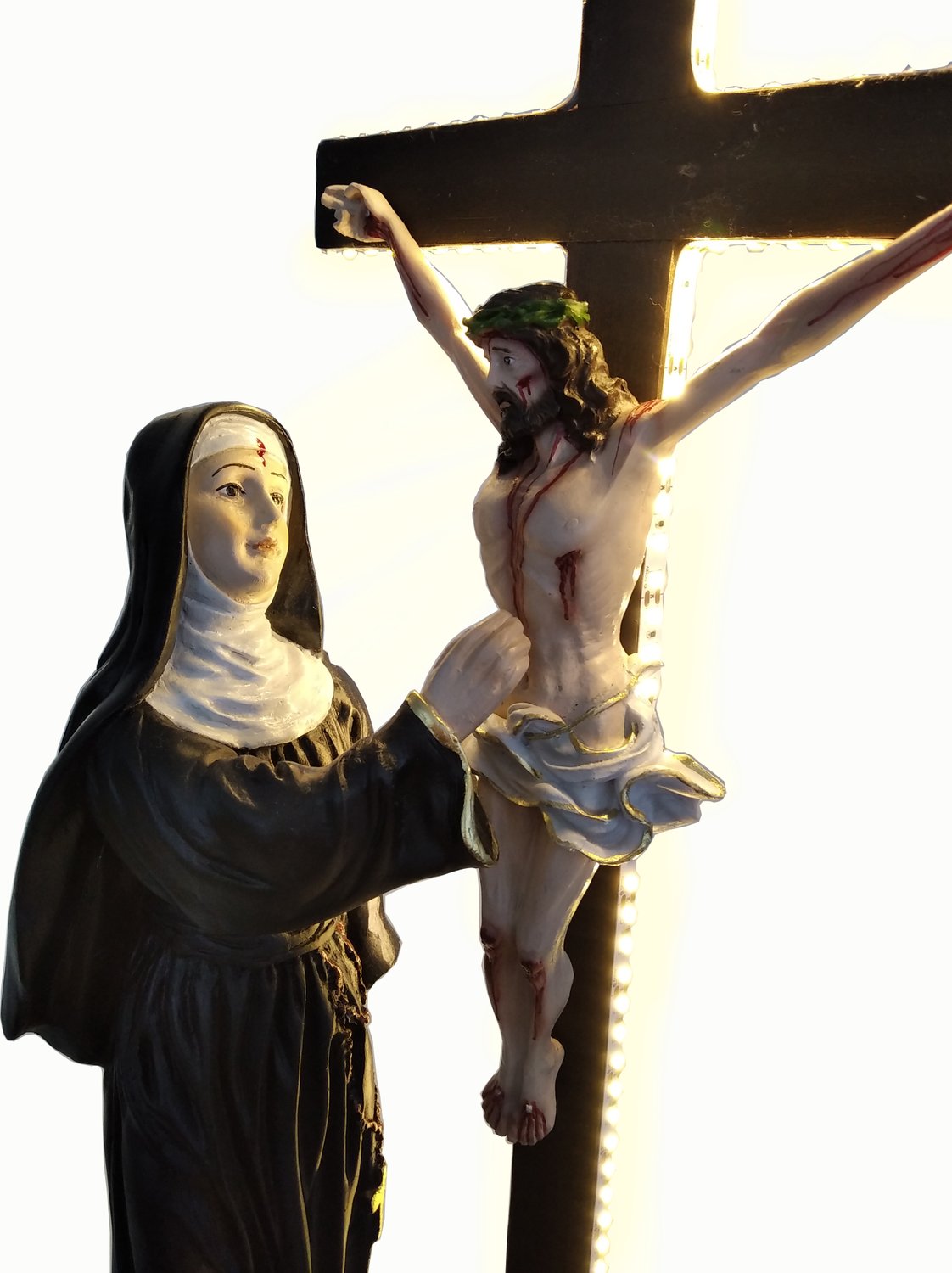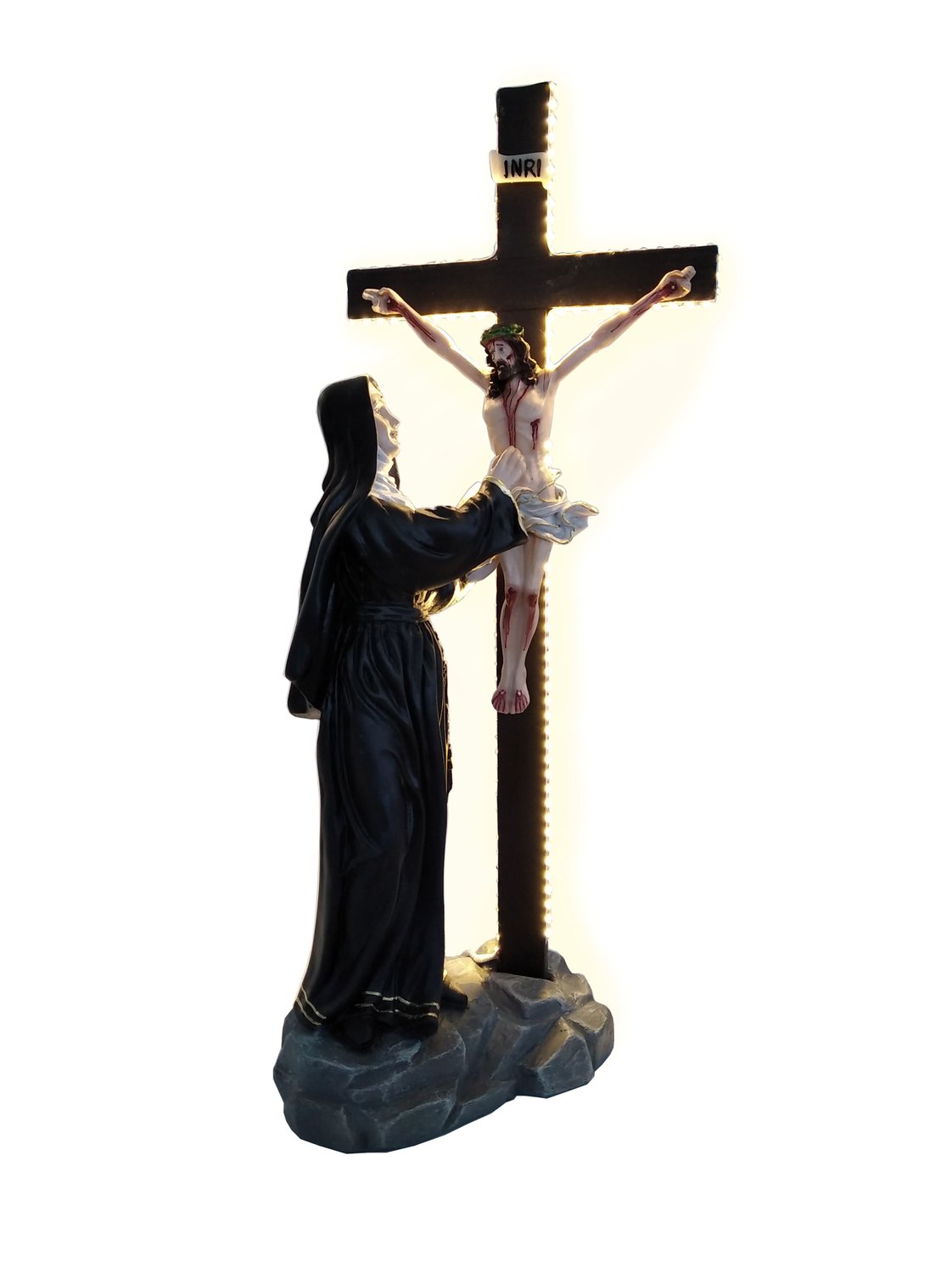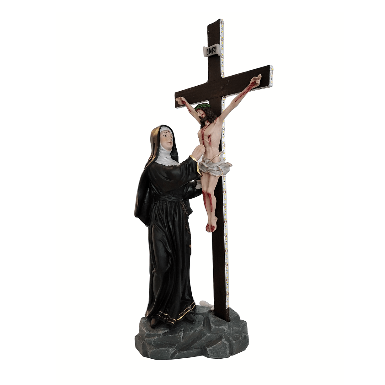 Imagem de Santa Rita contempla Jesus na Cruz de Resina Nacional - 53 cm