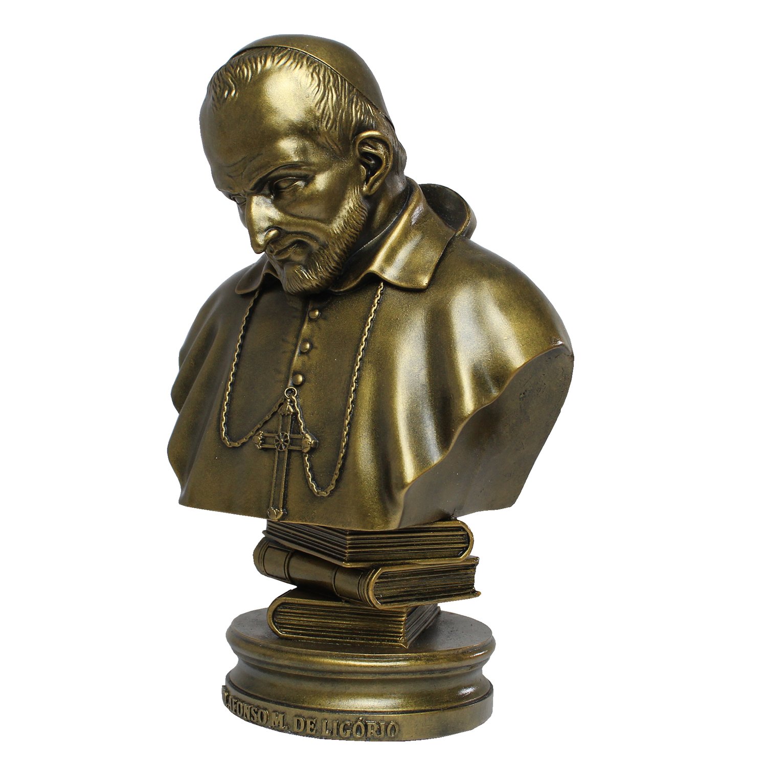 Imagem de Santo Afonso Busto de Mármore Pintura Bronze