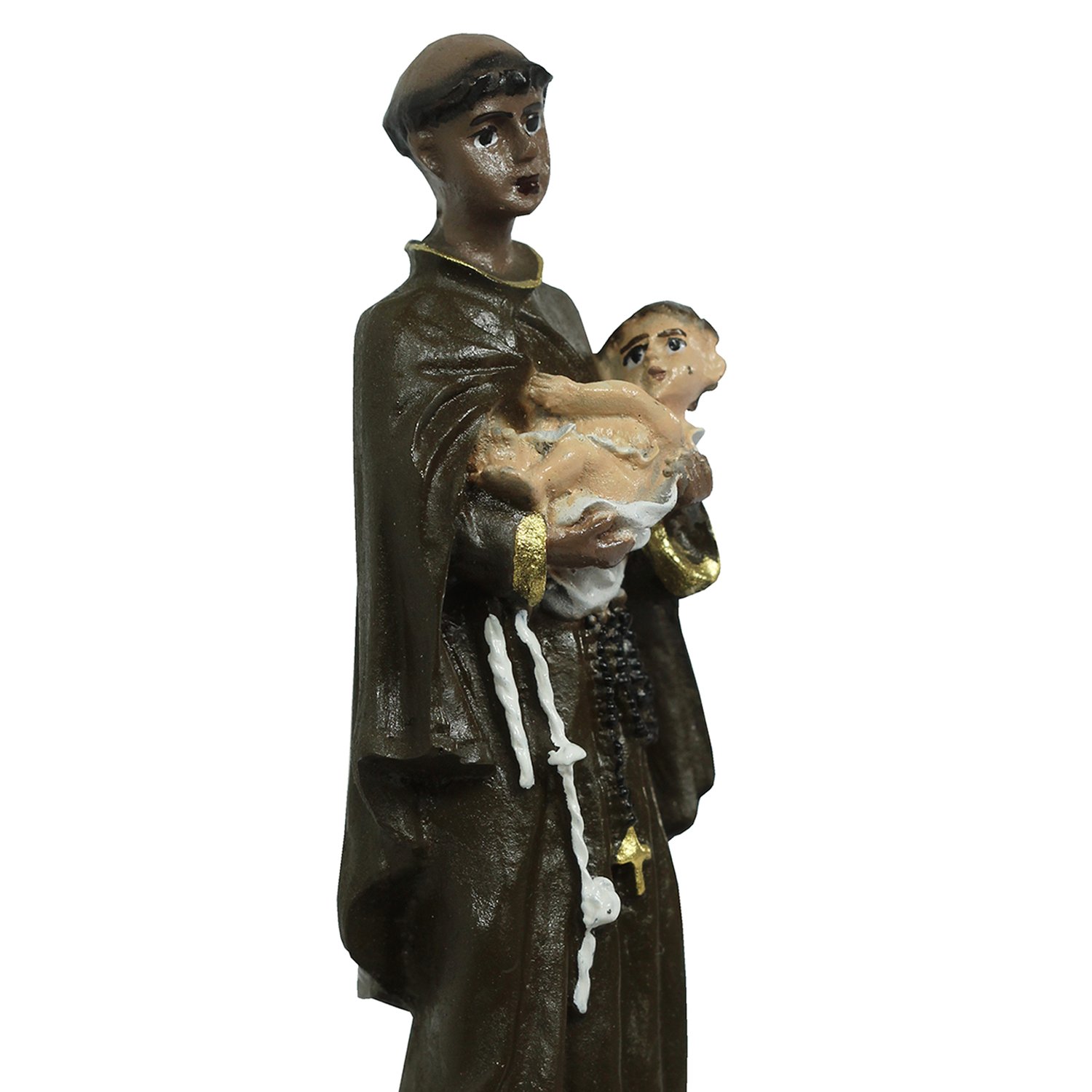 Imagem de São Benedito de resina nacional com pintura predominante na cor marrom