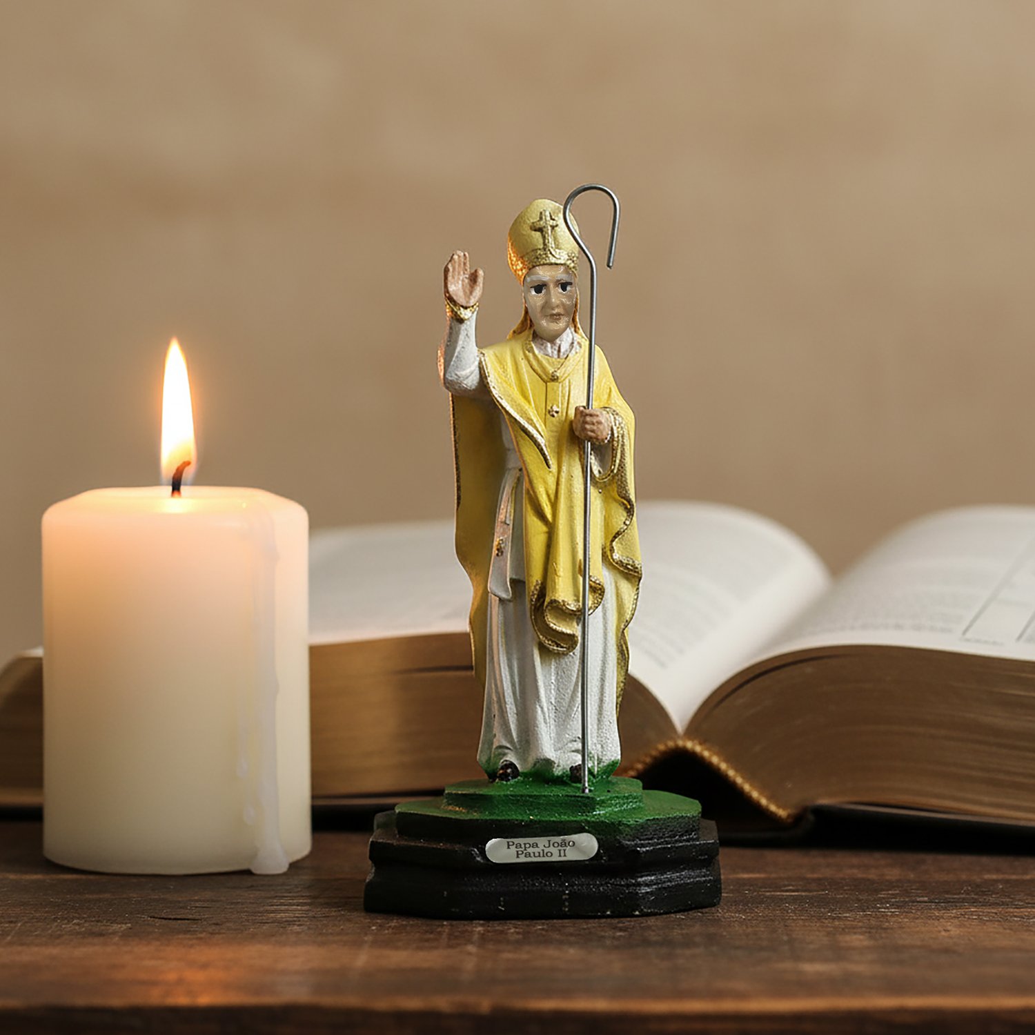 Imagem de São João Paulo || produzida em resina, a peça possui traços delicados, riqueza de detalhes e excelente acabamento.