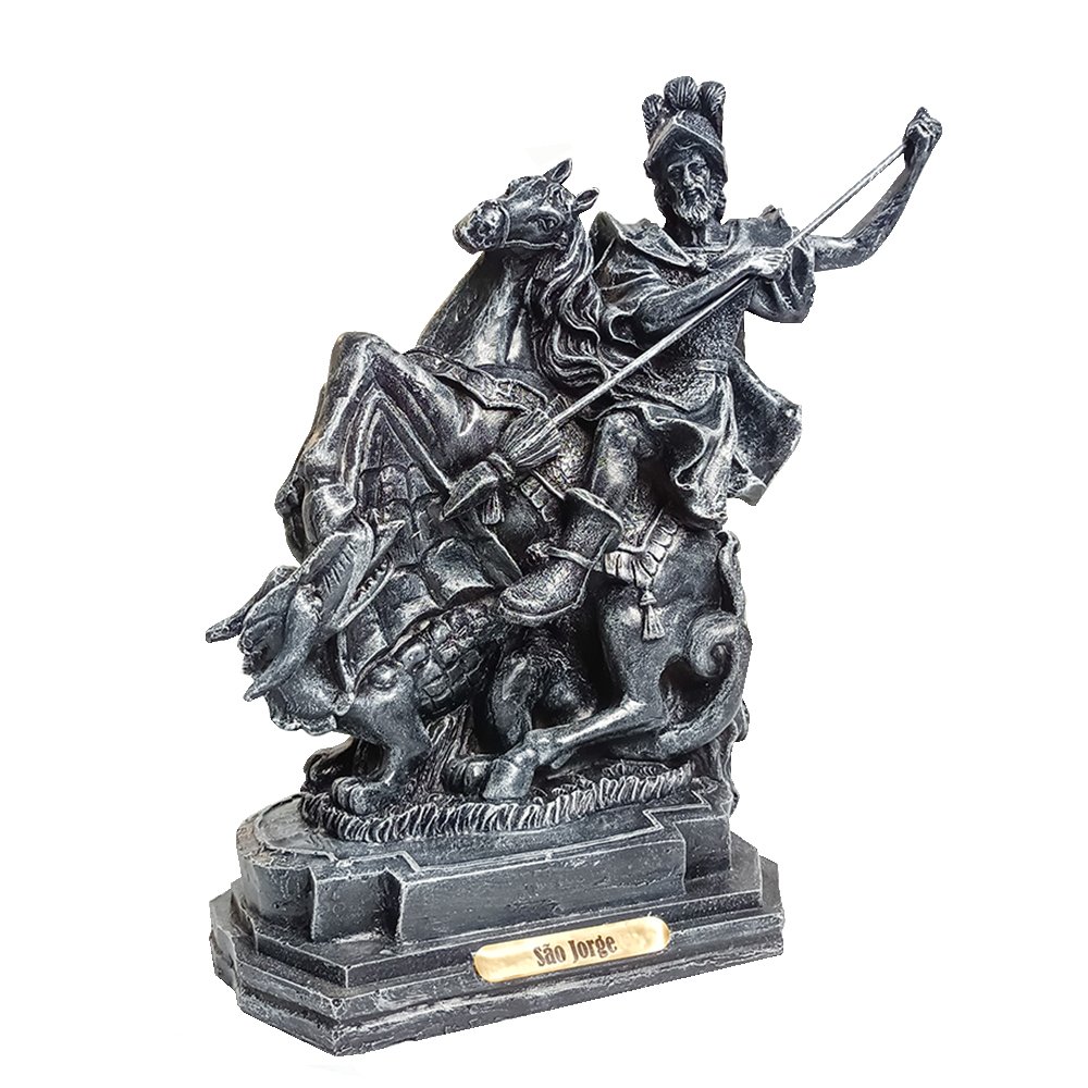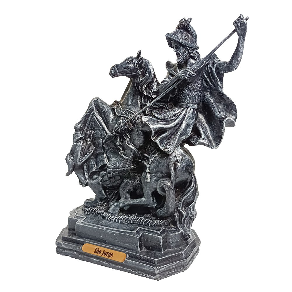 Imagem de São Jorge de Resina Nacional Efeito Pedra Escura - 28 cm