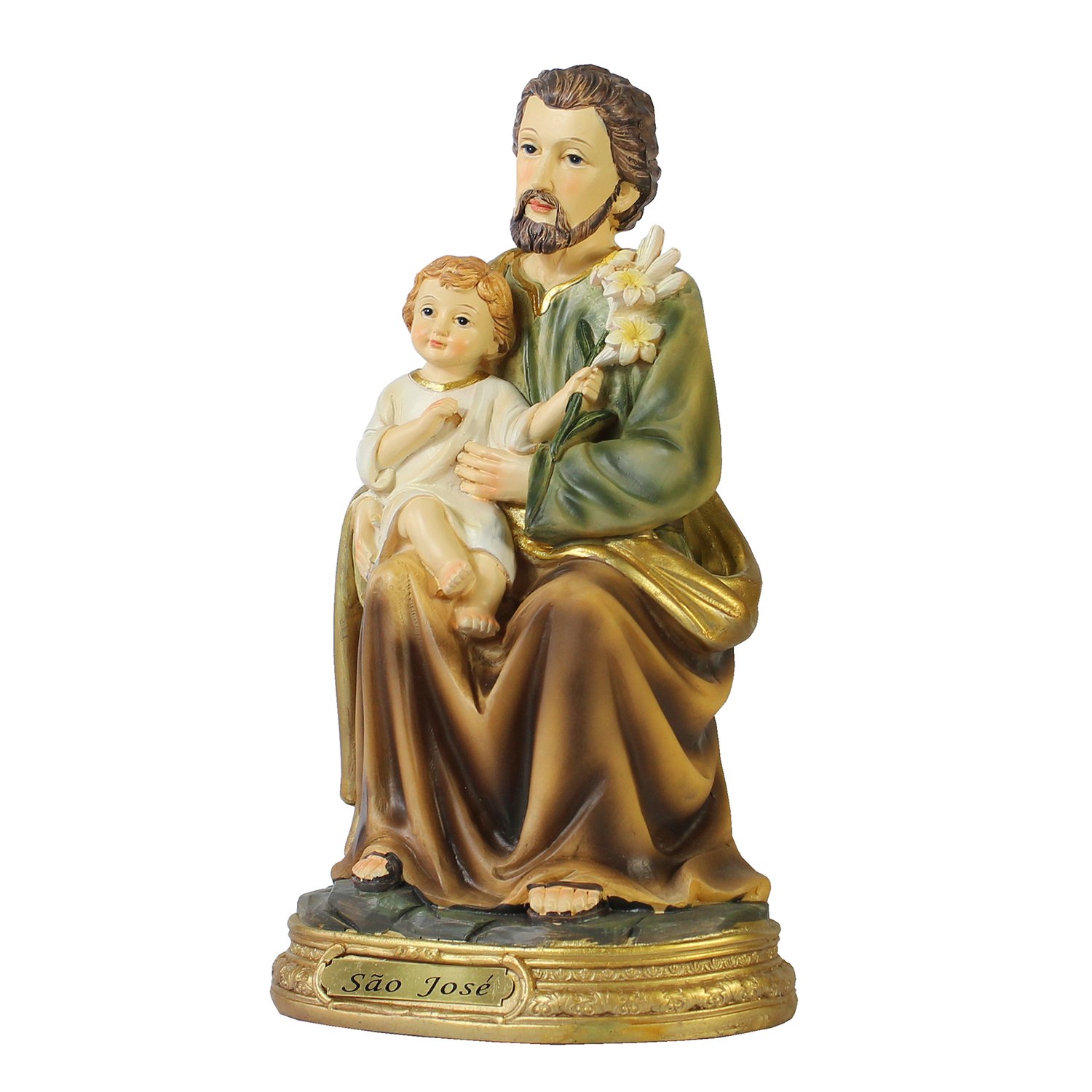 Imagem de São José Sentado com Menino Jesus de Resina Importada