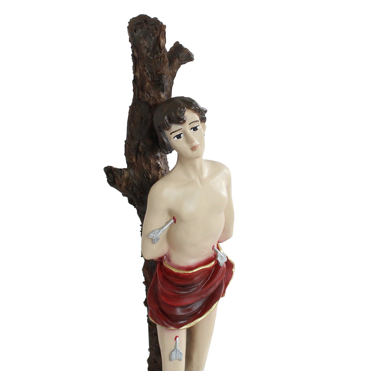 Imagem de São Sebastião produzida em resina, a peça possui traços delicados, riqueza de detalhes e excelente acabamento.