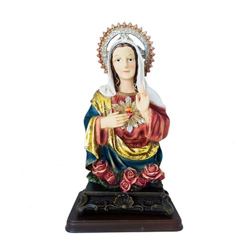 Imagem do Sagrado Coração de Maria produzida em resina, produto importado, acabamento fino.