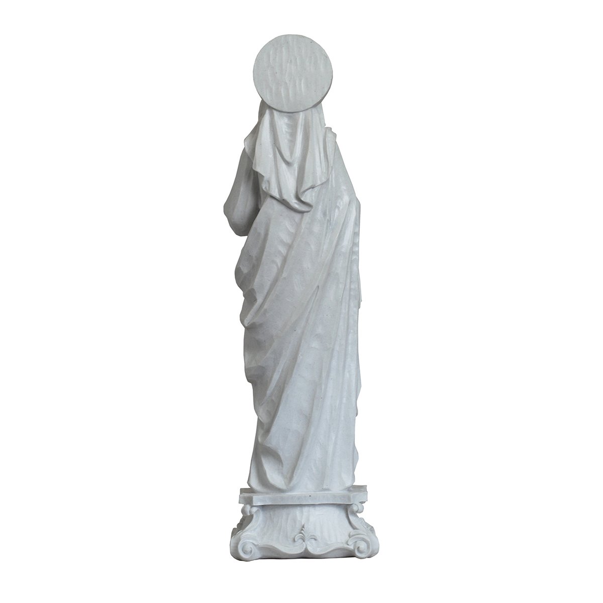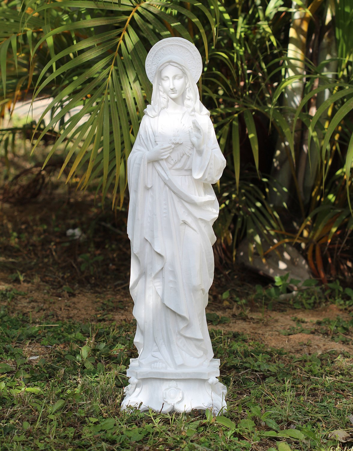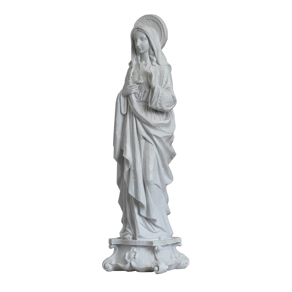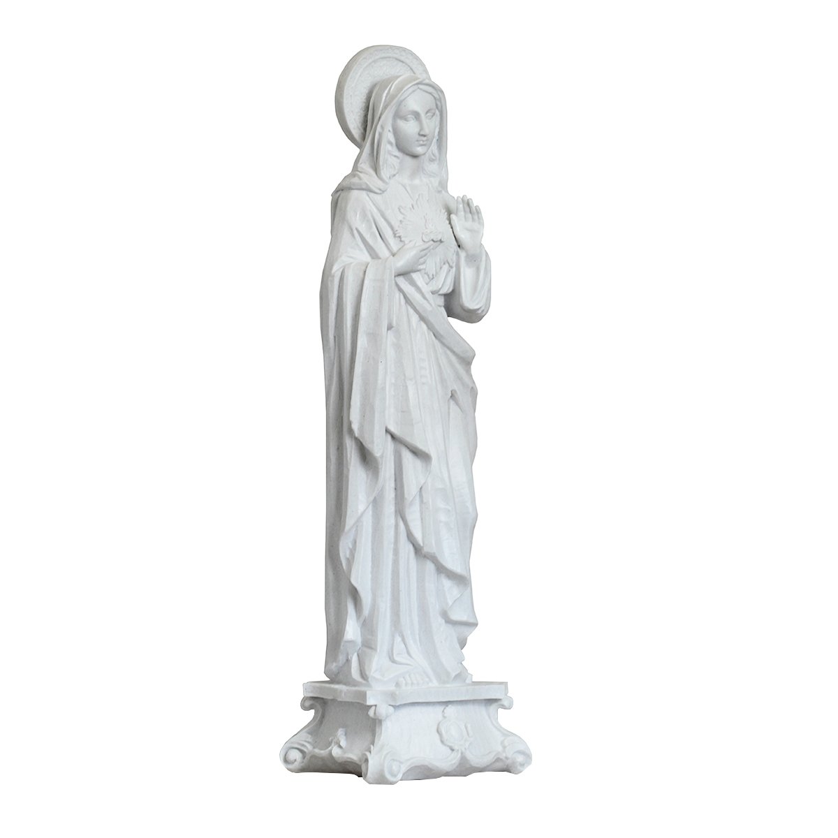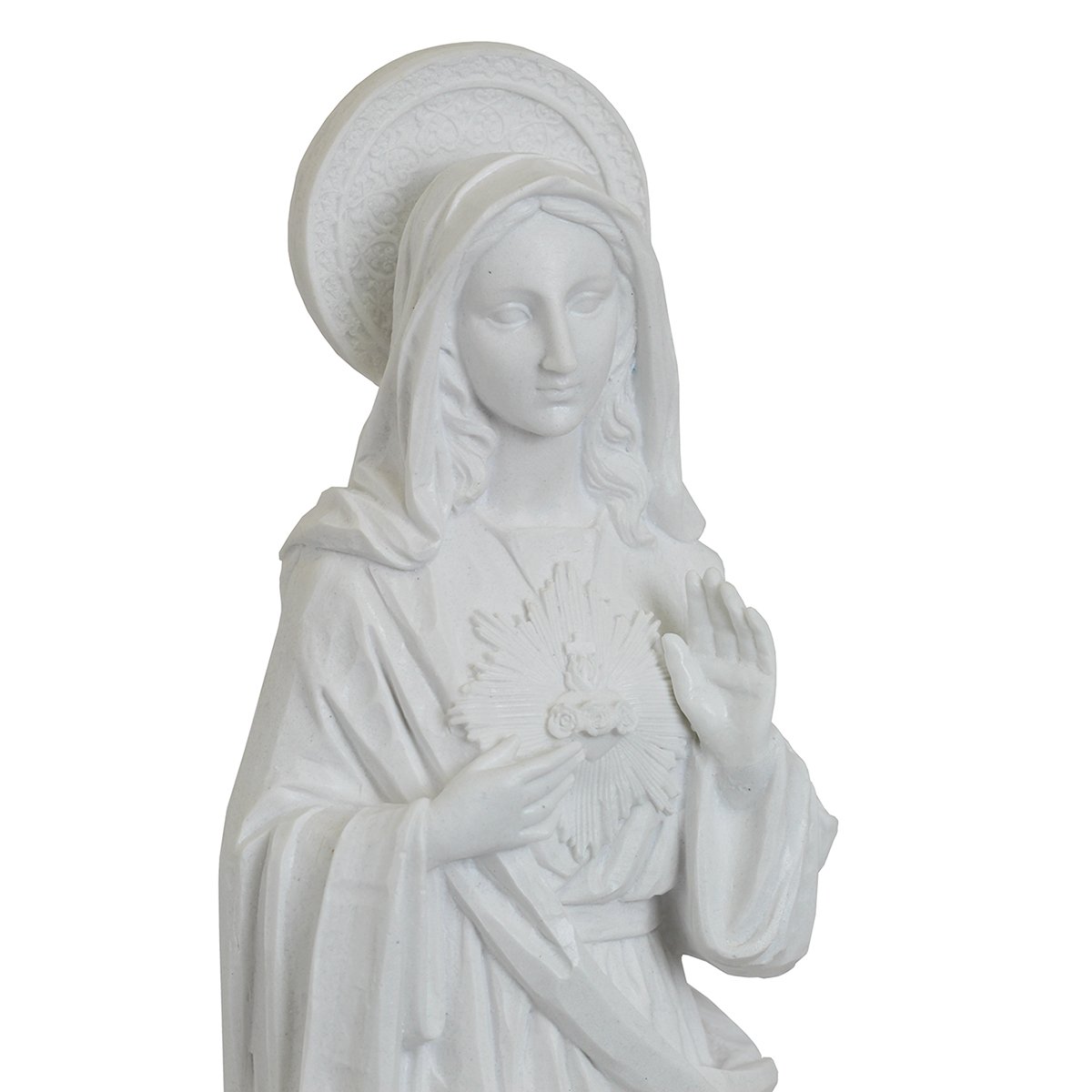 Imagem do Imaculado Coração de Maria produzida em mármore, medindo aproximadamente 57cm de altura e 18cm de largura e 15 cm de profundidade.
