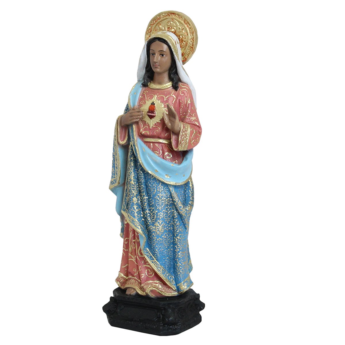 Imagem do Imaculado Coração de Maria Morena de Resina Nacional - 28 cm