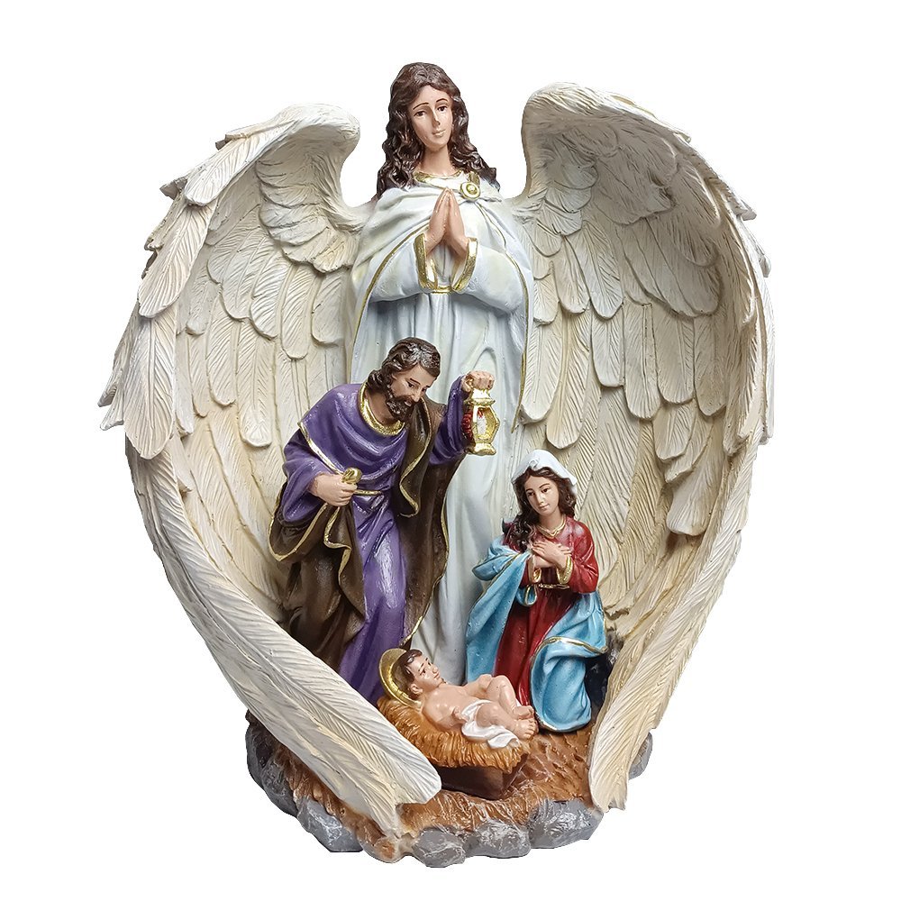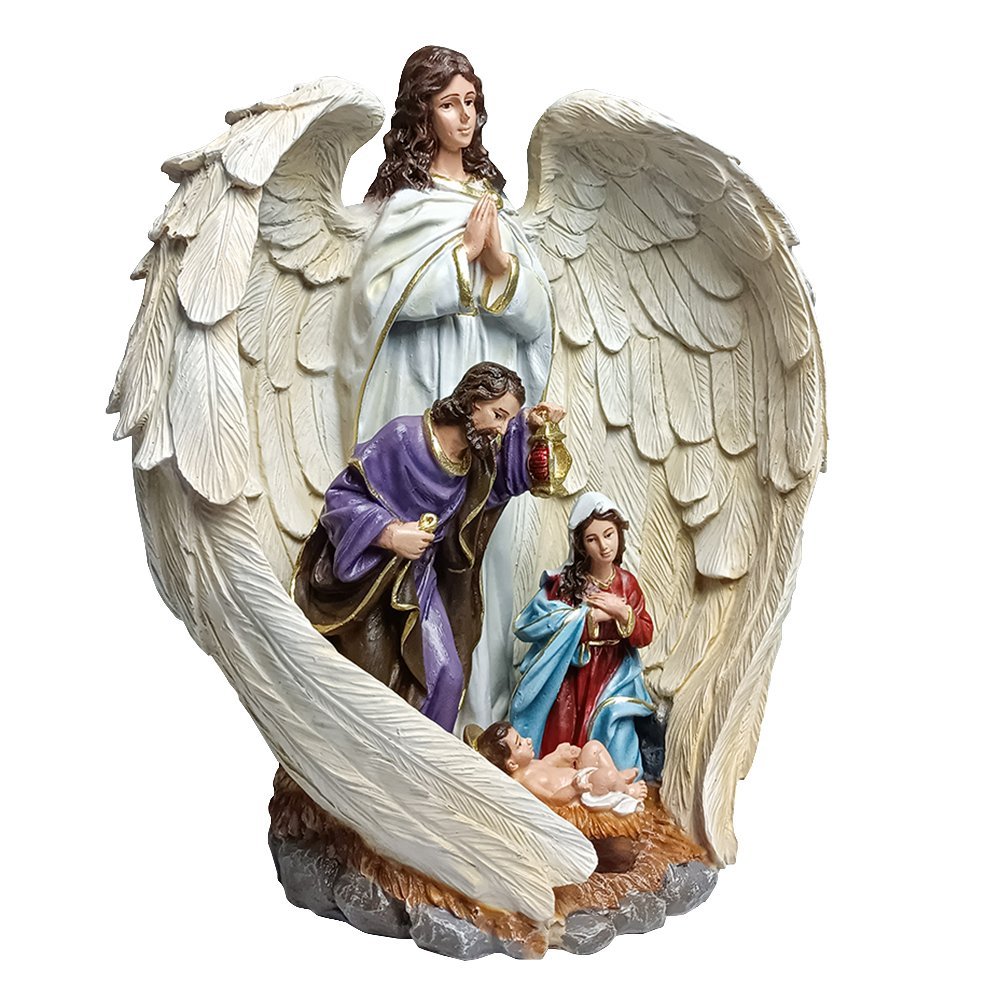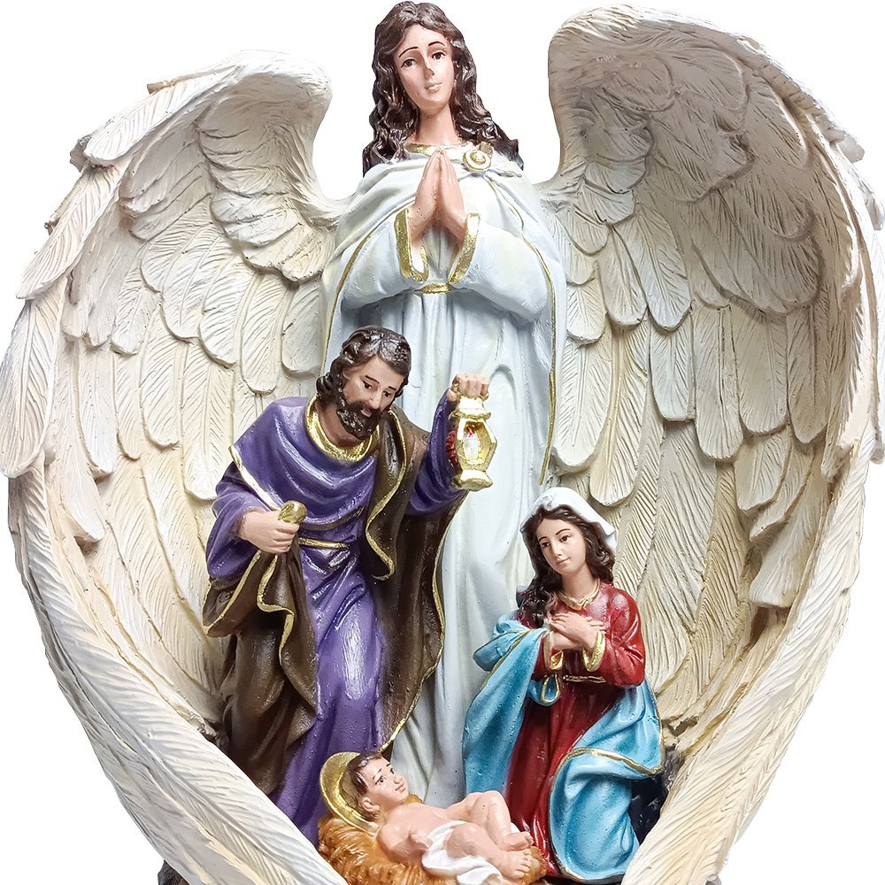 Presépio Anjo e Sagrada Família de Resina Nacional