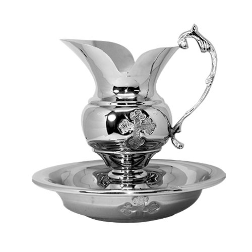 O conjunto do lavabo é composto por jarra e bacia utilizados para lavar as mãos do sacerdote após a apresentação das oferendas.