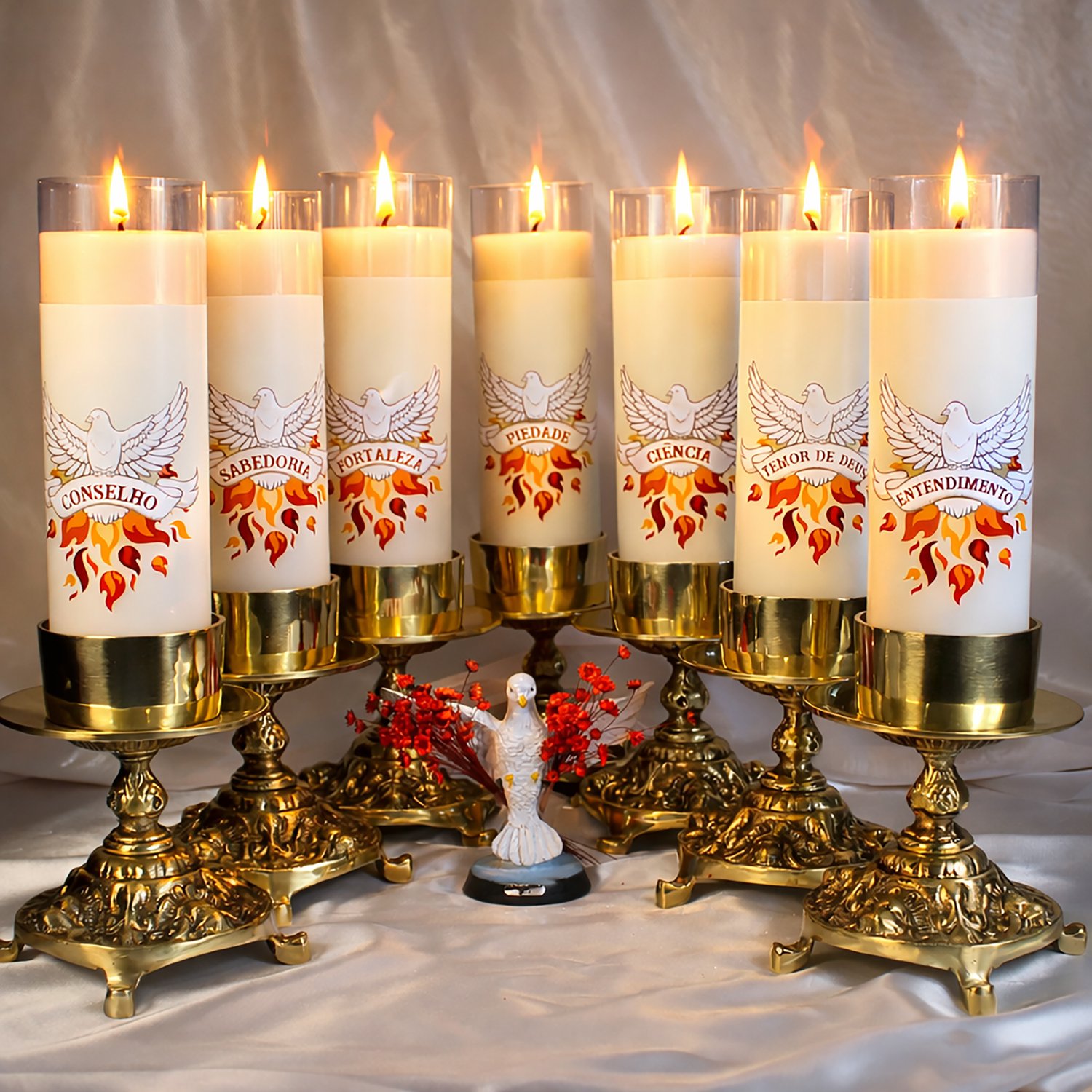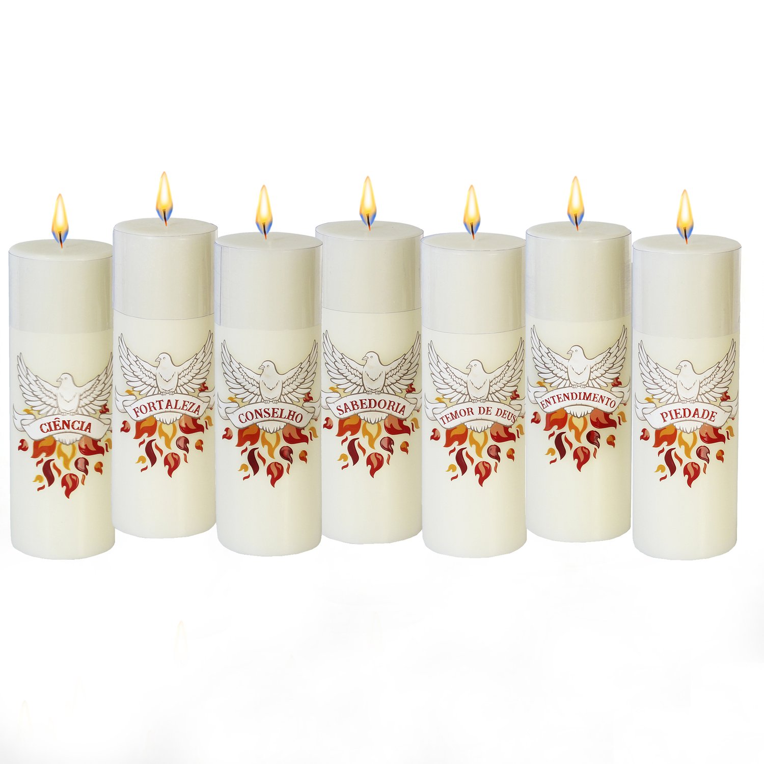 Kit 7 Dons do Espírito Santo 7 Velas Brancas Adesivo
