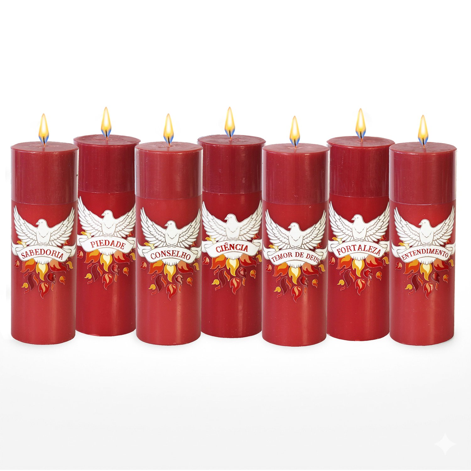 Kit 7 Dons do Espírito Santo 7 Velas Vermelhas Adesivo