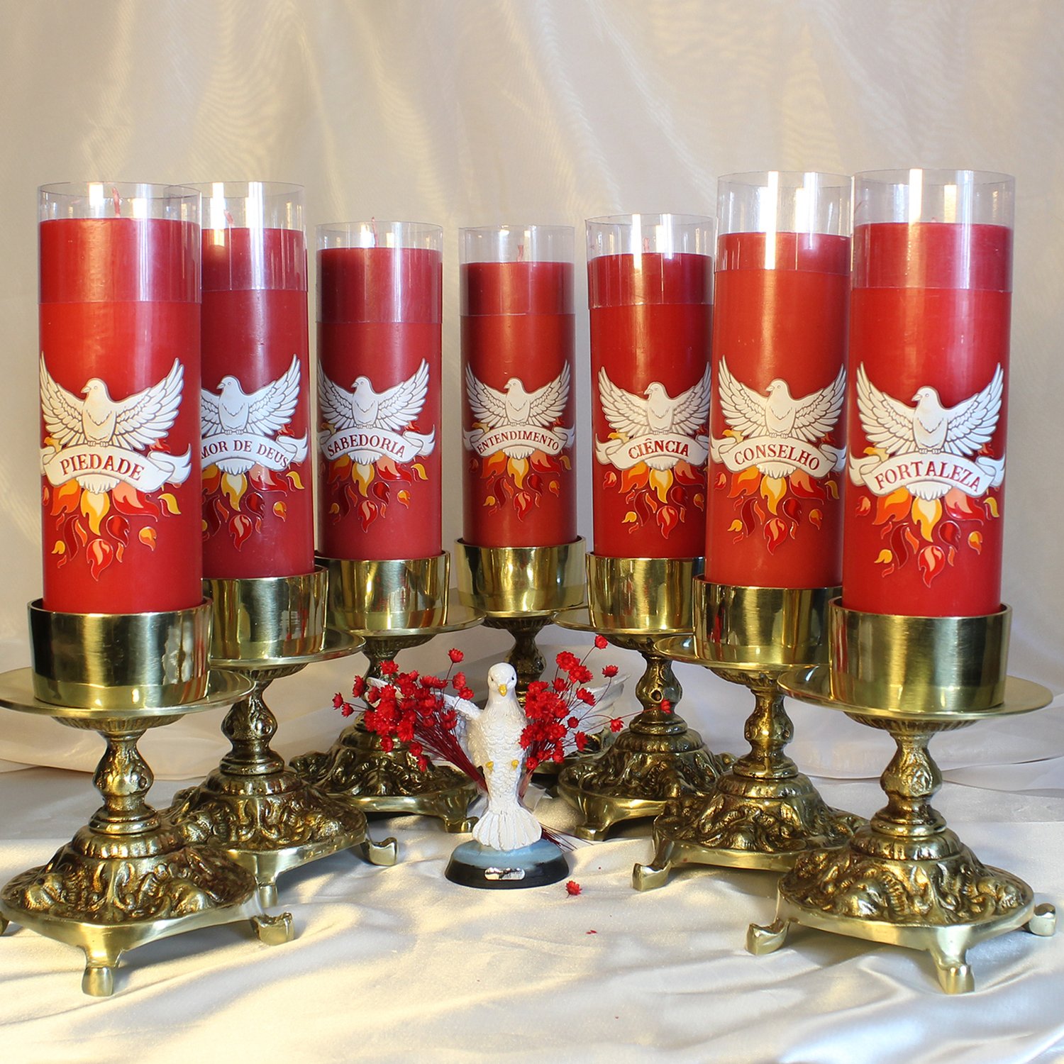 Kit 7 Dons do Espírito Santo 7 Velas Vermelhas Adesivo