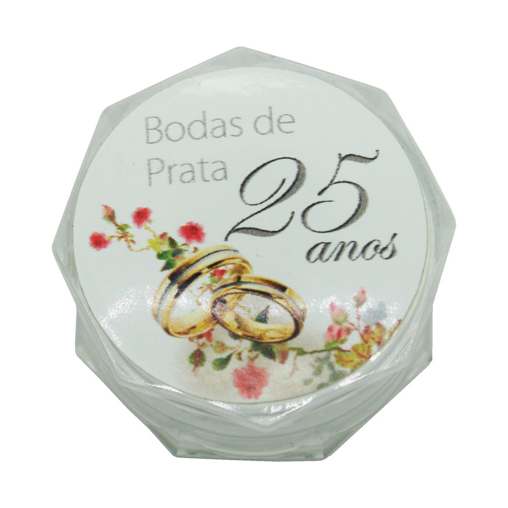 Lembrança de bodas dezena prata. Caixa acrílica com adesivo temático contendo uma dezena prata. A caixinha possui 3cm de diâmetro.