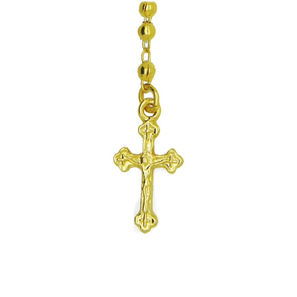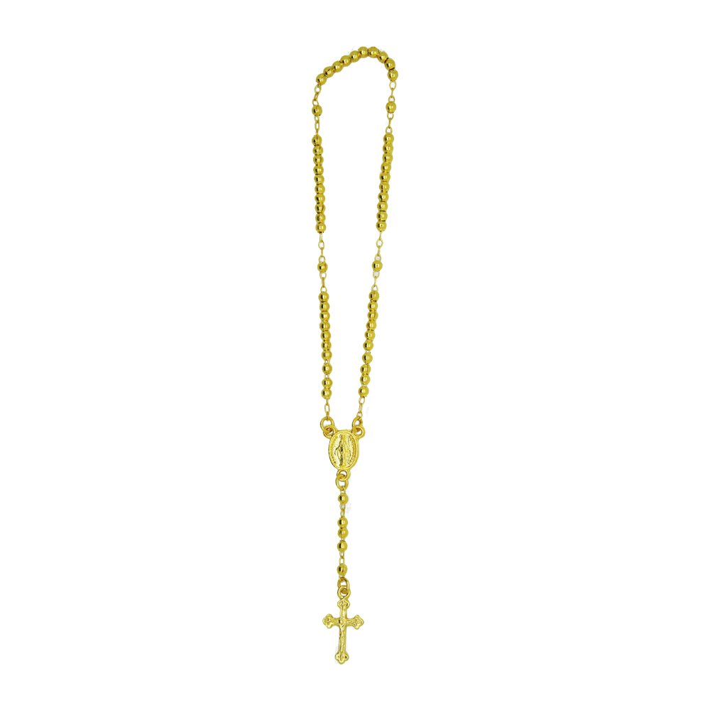 Lembrança de casamento terço dourado. Caixa acrílica com adesivo temático contendo um terço dourado.