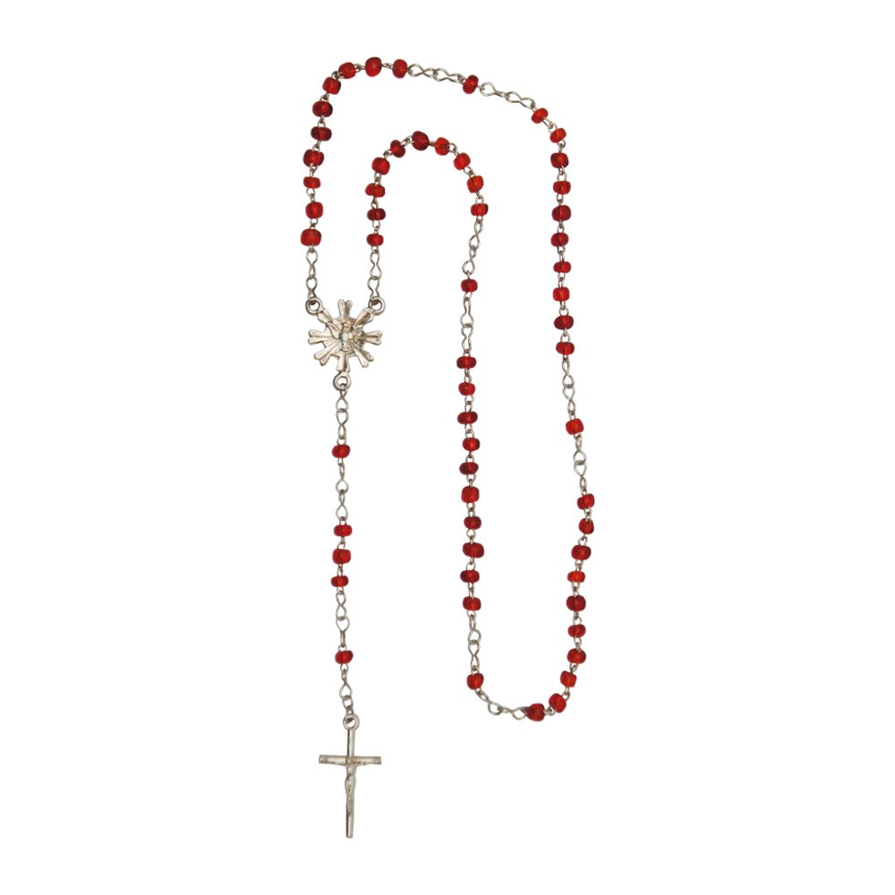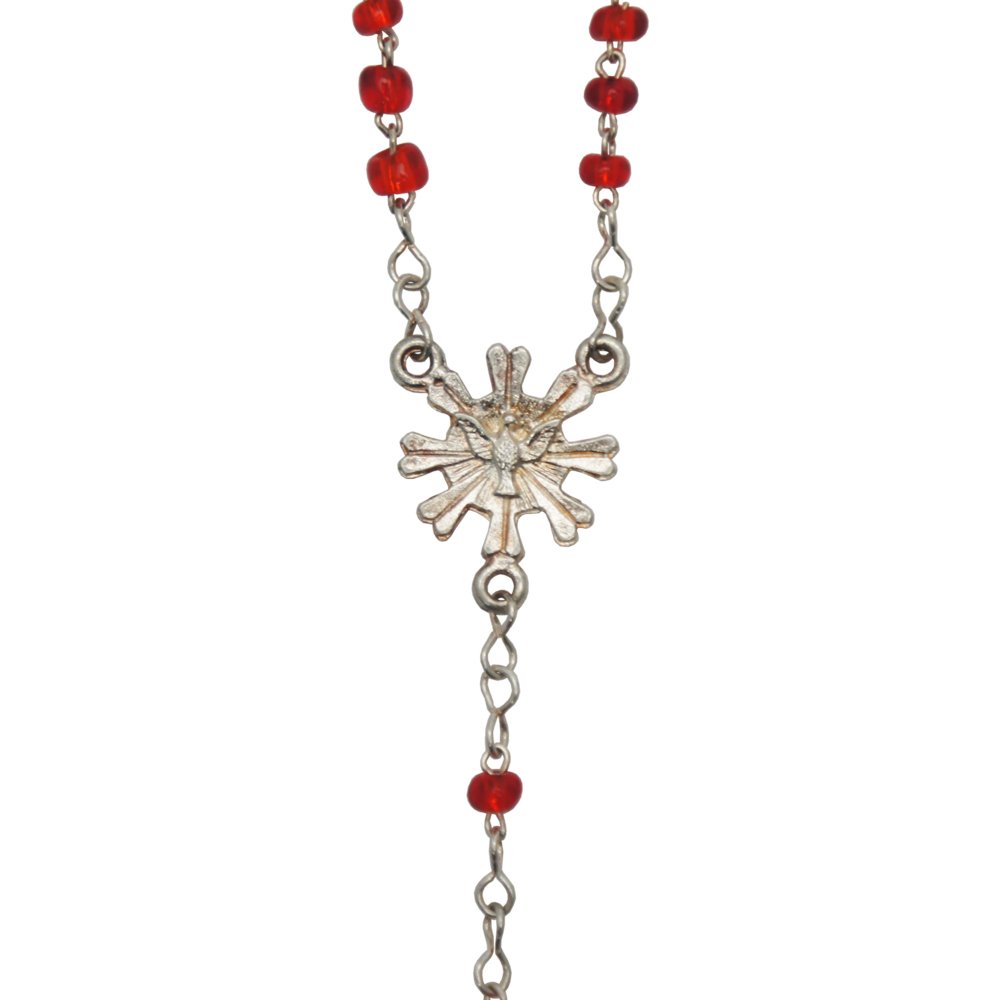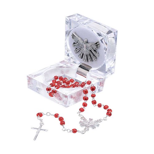 Caixa acrílica com adesivo Crisma contendo um terço pérola com entremeio Crisma. Possui as seguintes dimensões, 33cm altura, 2cm largura por 1cm comprimento.