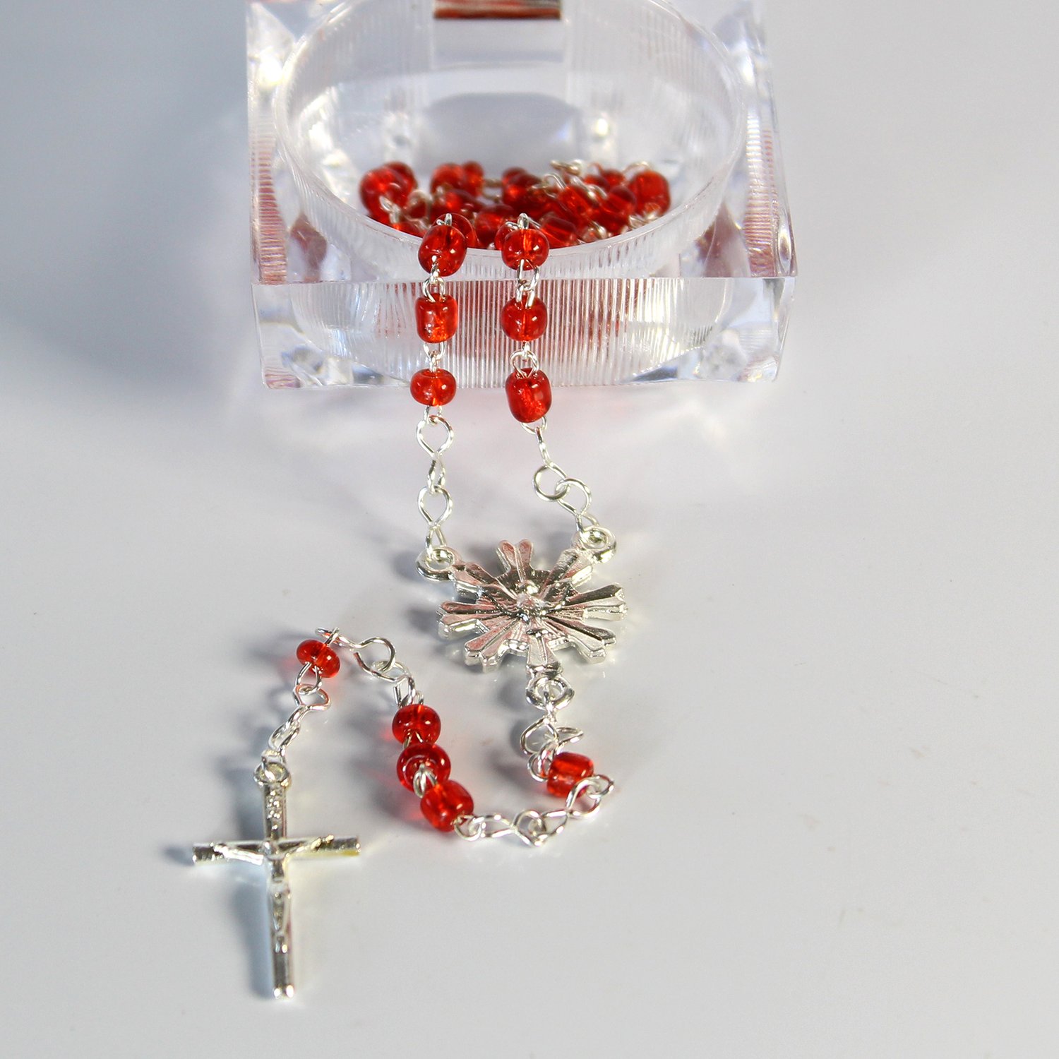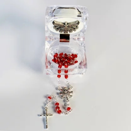Lembrança Crisma Terço Missanga Vermelho Caixa