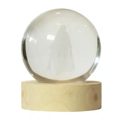 Esfera de vidro esculpida a lazer, com base de MDF e 6 LED´s de alta potência.