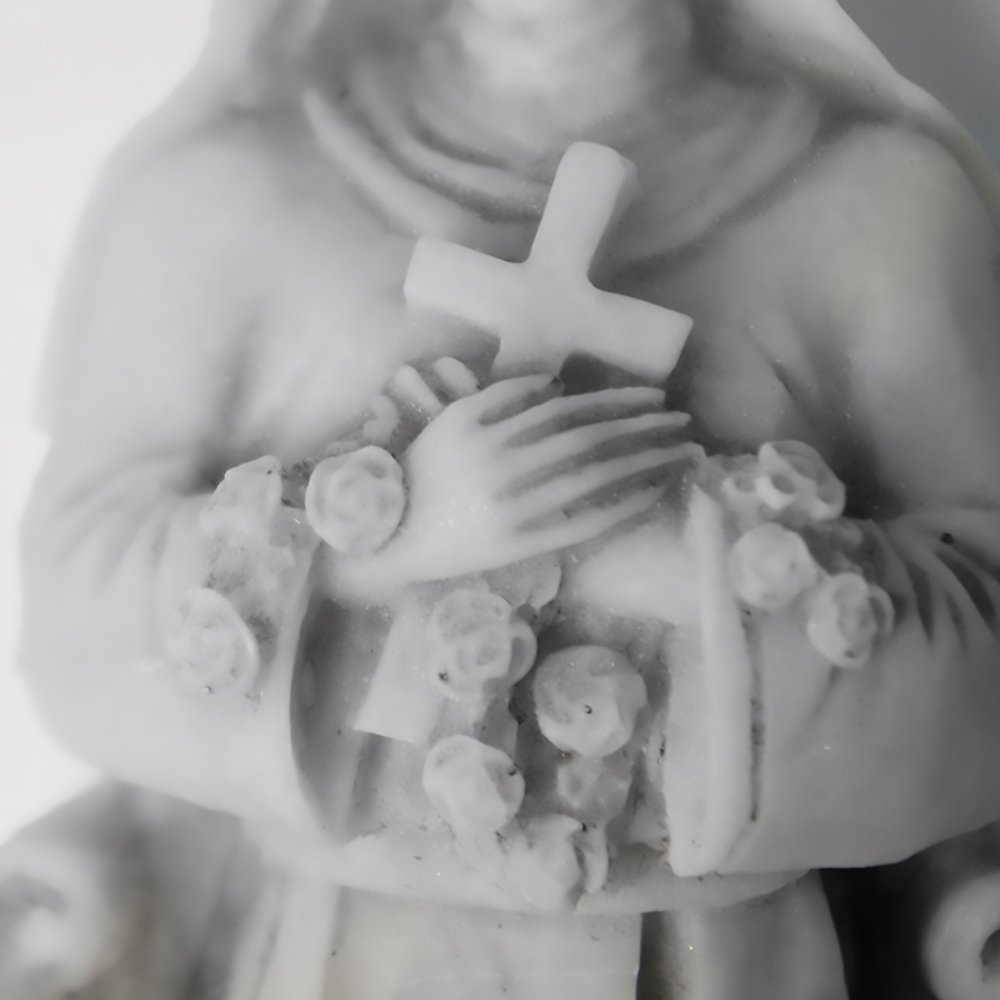Mármore Pia Santa Rita, medindo aproximadamente 13cm de altura e 6,5cm de largura e 4cm de comprimento.