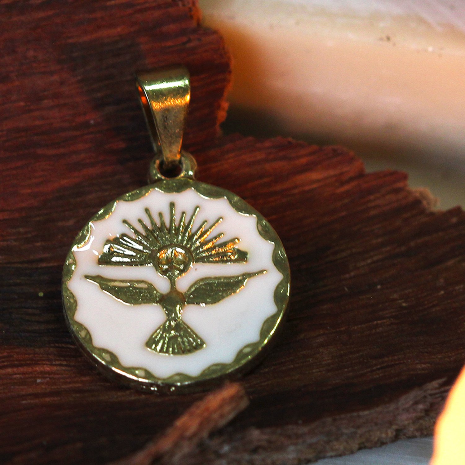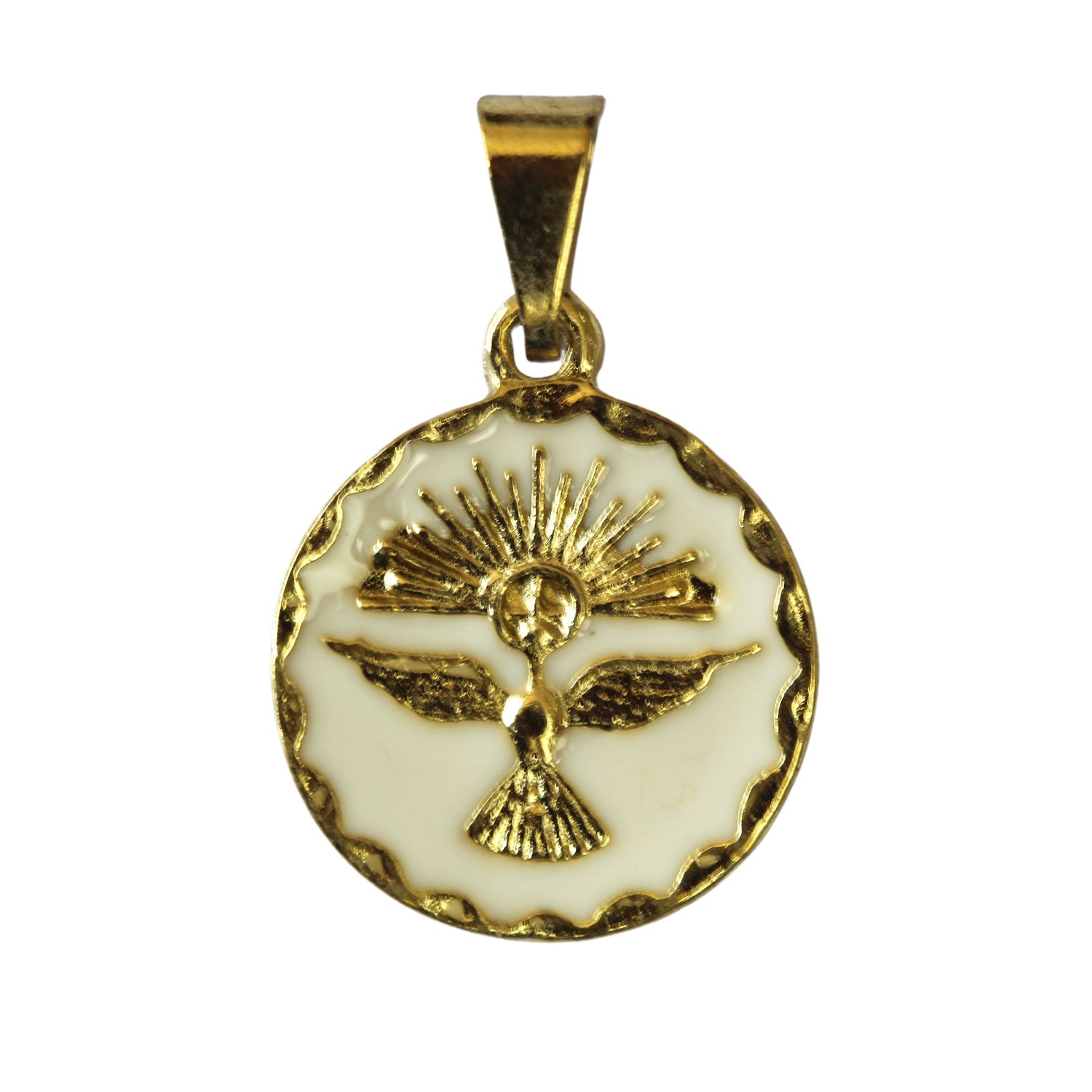 Medalha do Divino Espirito Santo Fundo Branco- 15mm