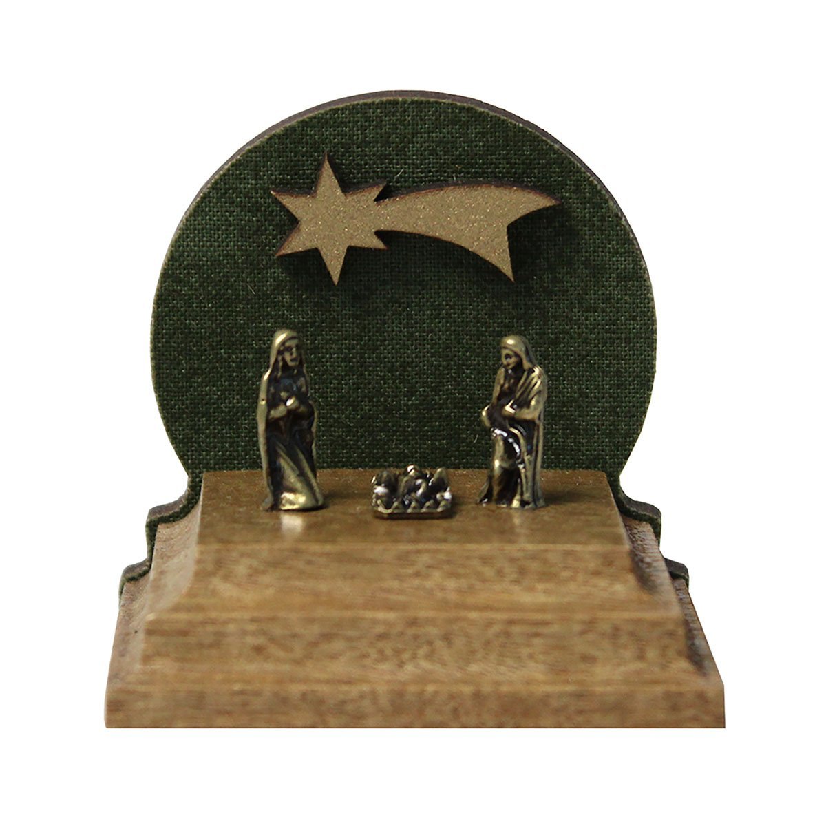 Mini Presépio Ouro Velho na Base de Madeira Fundo Verde