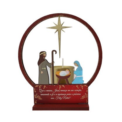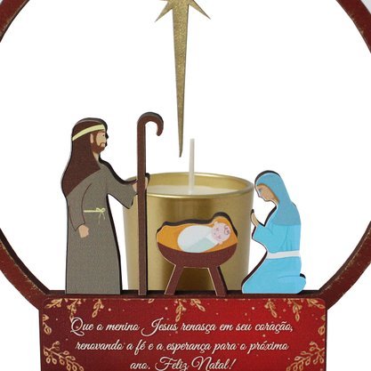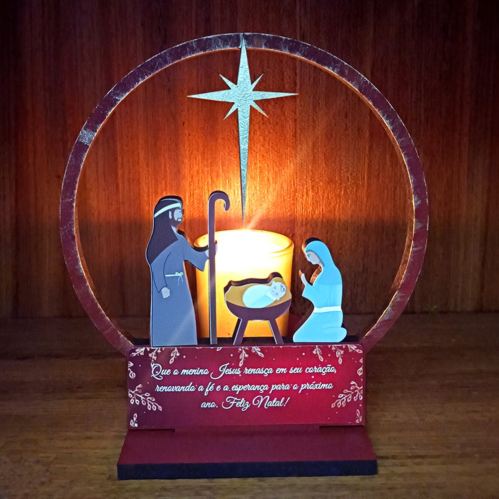 Natal Sagrada Família MDF Vela Vidro Dourado