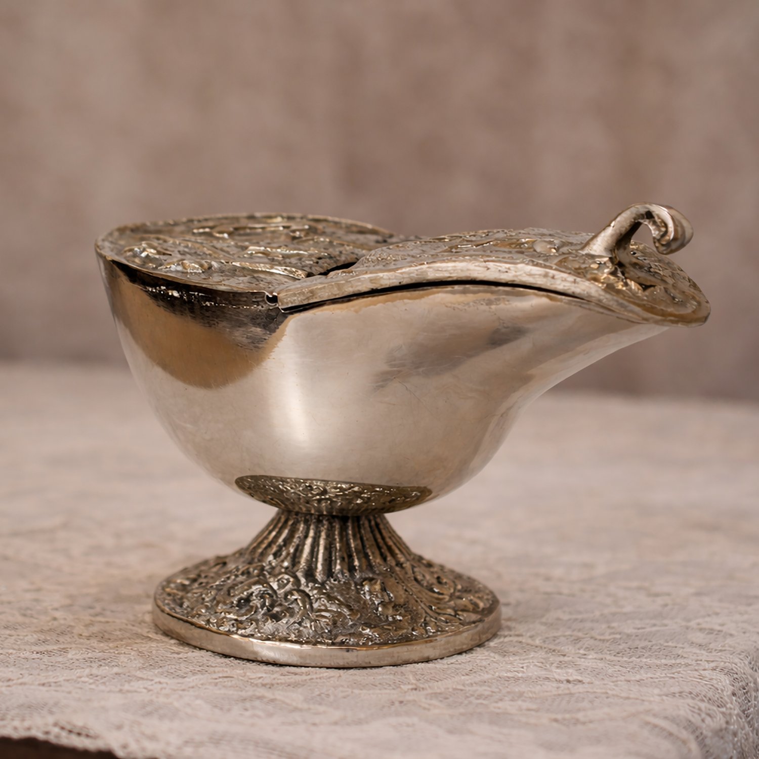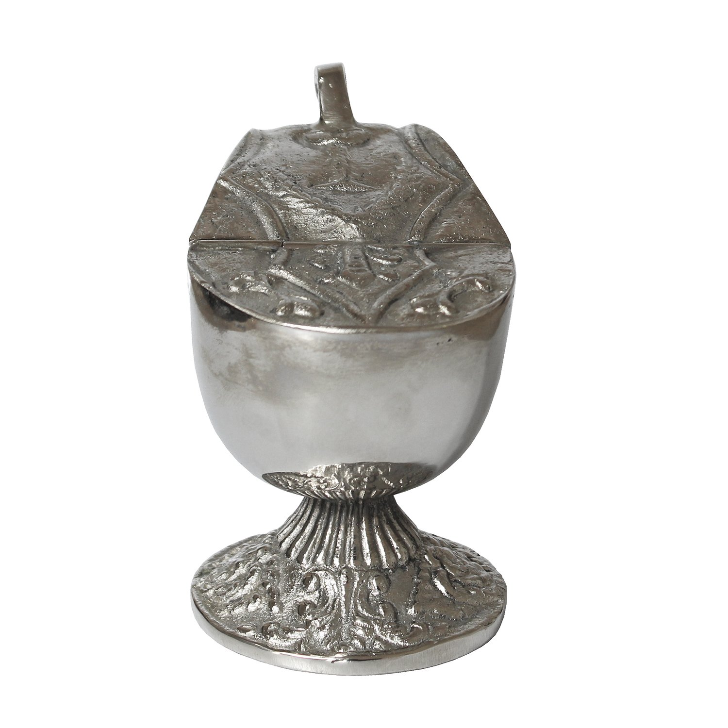 utilizado para guardar e transportar o incenso (grãos aromáticos) que será queimado no turíbulo durante as celebrações. Ela simboliza a preparação do incenso e a oração que sobe a Deus, sendo manuseada pelo naveteiro (ou acólito).
