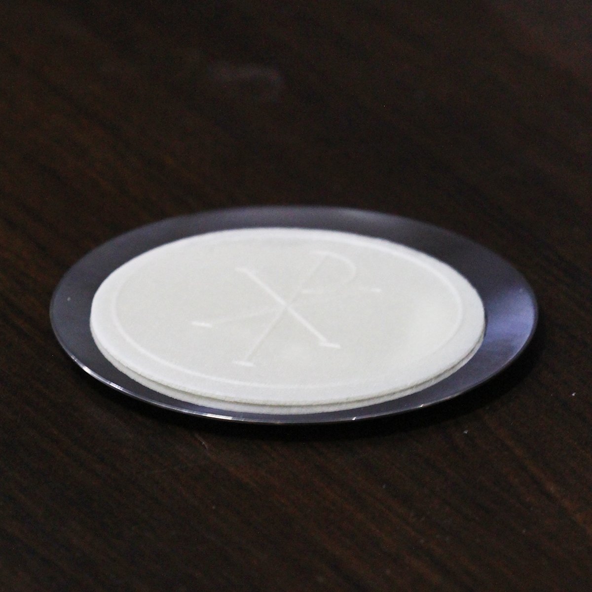 Patena é um recipiente em forma de prato onde se colocam as partículas da Santa Missa para consagração.