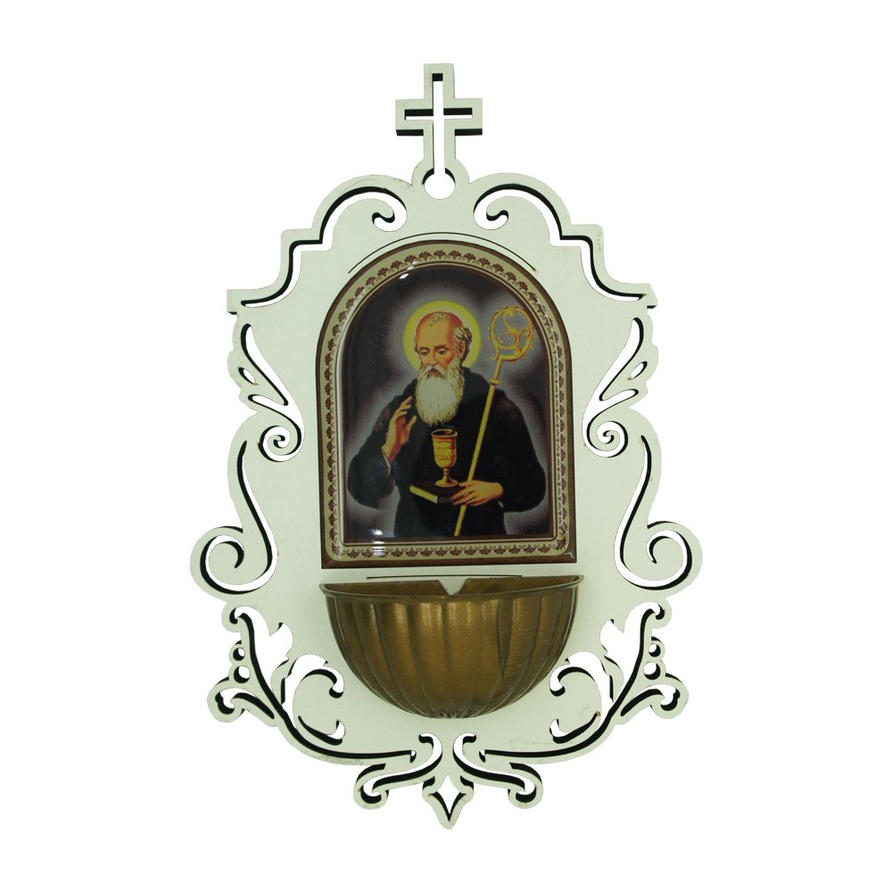Pia Água Benta São Bento produzida em MDF branco de 6mm e adesivo de alta qualidade resinado com produto importado da Italia. Ideal para momentos de oração e para abençoar quem nós amamos. Fabricação própria, por isso garantimos o melhor preço.