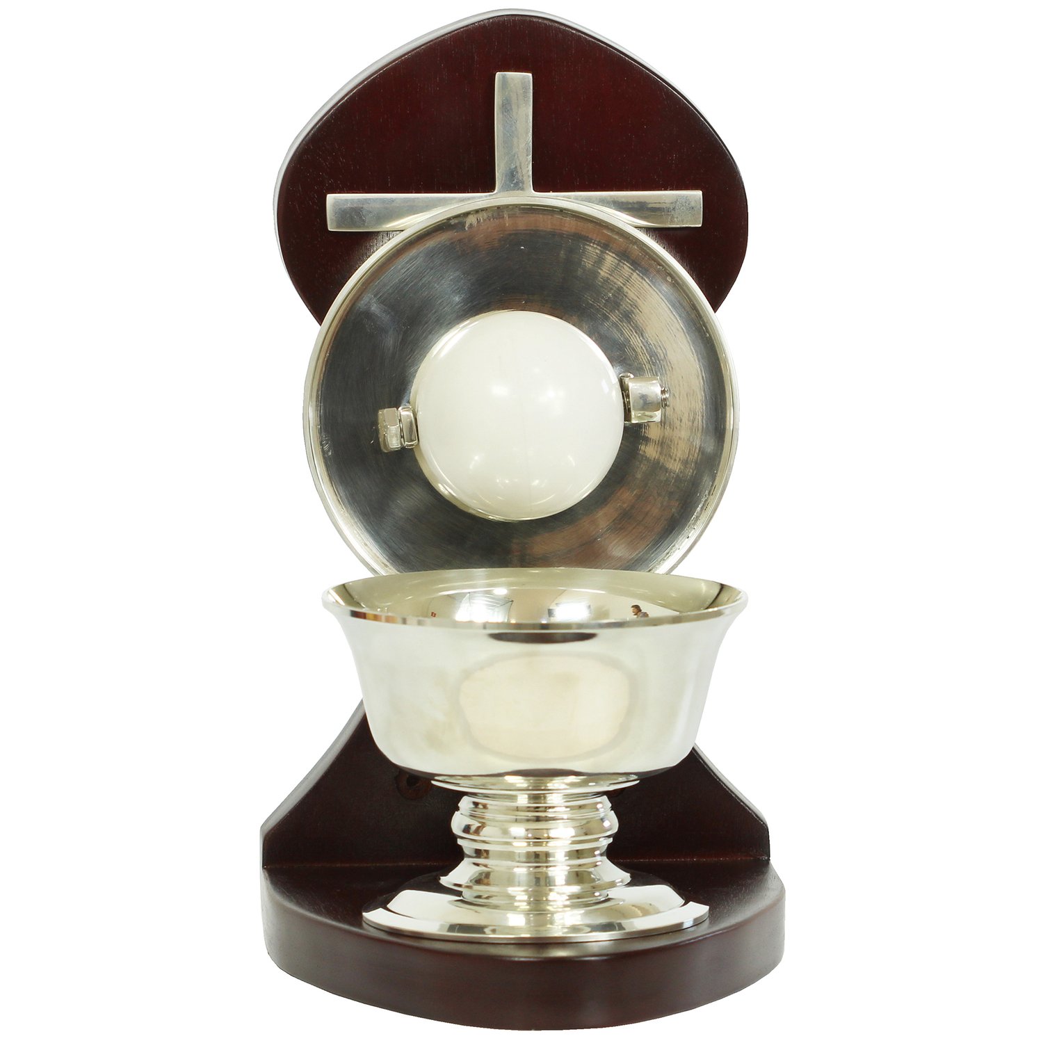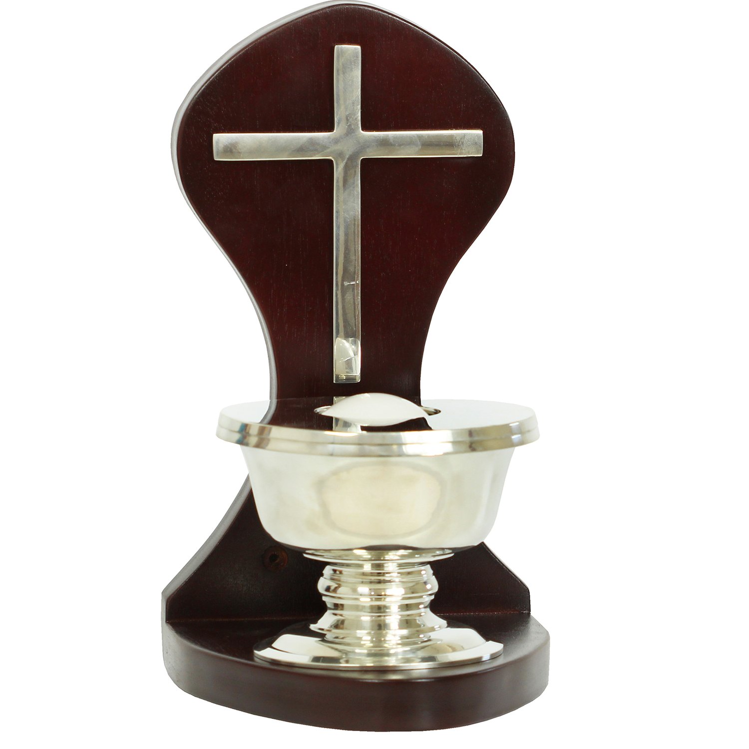 Elegante e funcional, esta pia de água benta é confeccionada em madeira maciça estilo mogno, com acabamento refinado que transmite nobreza e devoção. Possui purificatório em metal de alto brilho, com sistema roll-on que garante praticidade e higiene no uso.