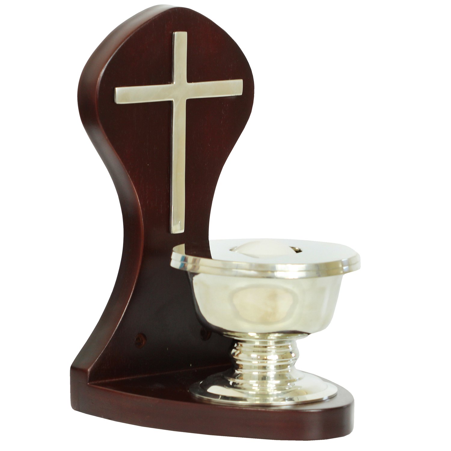 Pia Porta Água Benta Madeira e Metal - 26 x 14 cm